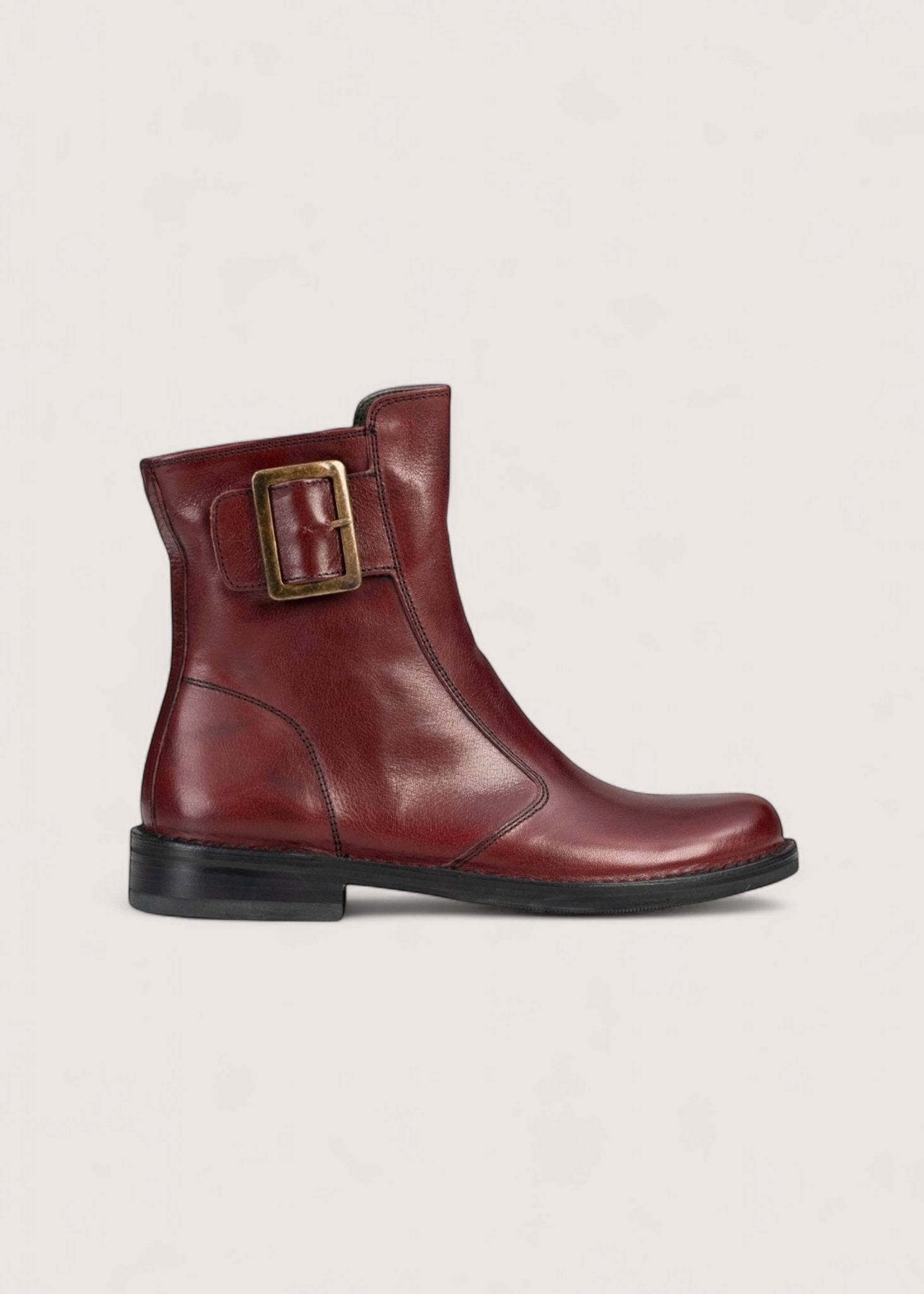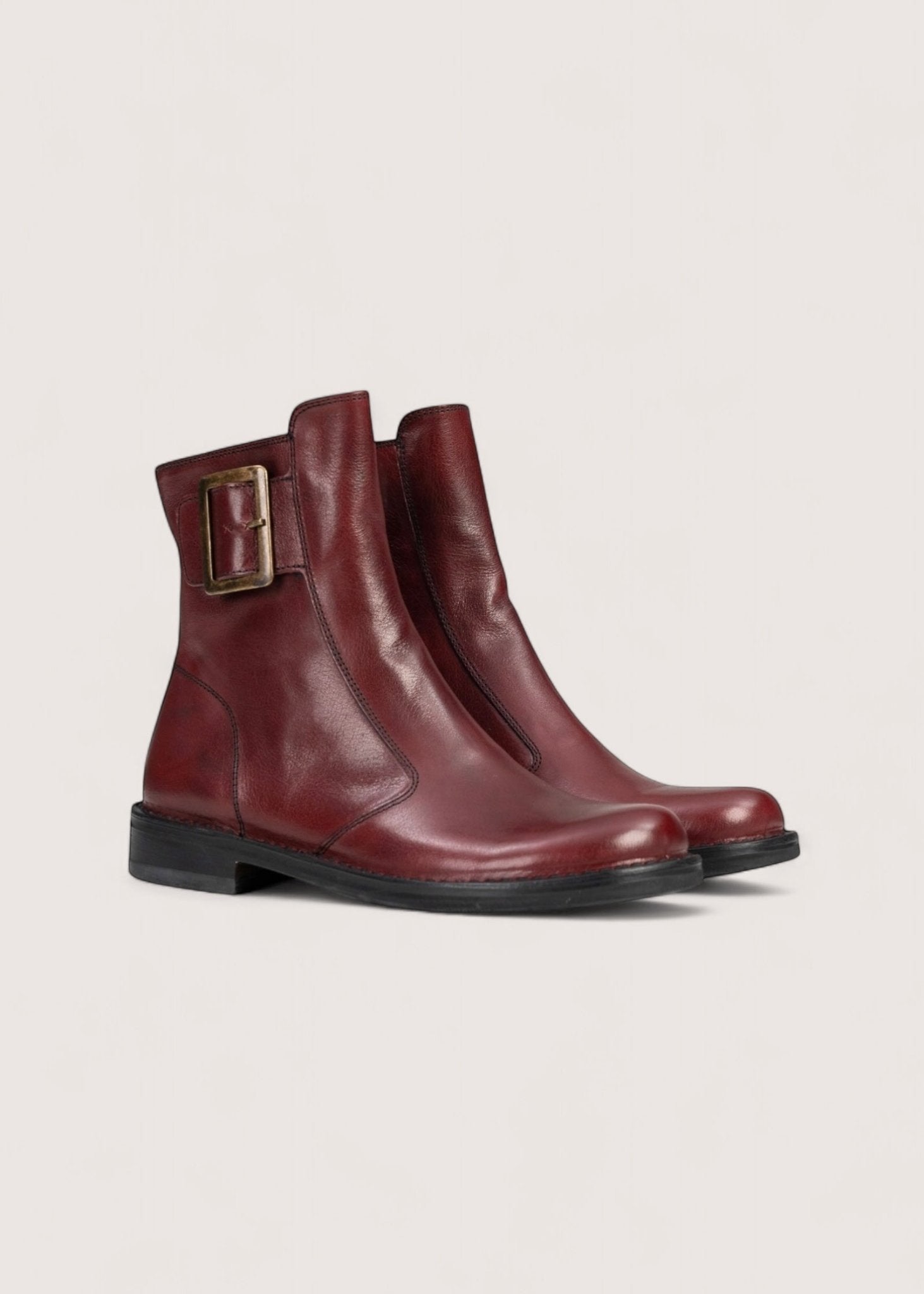Klassisk støvle med stort dekorativ spænde og indvendig lynlås. Da støvlerne er et naturprodukt, kan skindet variere i farve og struktur. Håndsyet i Italien. OBS! Spændet kan variere en smule i udseende.