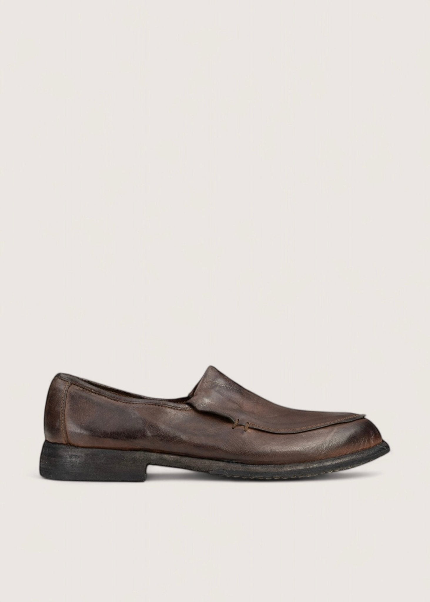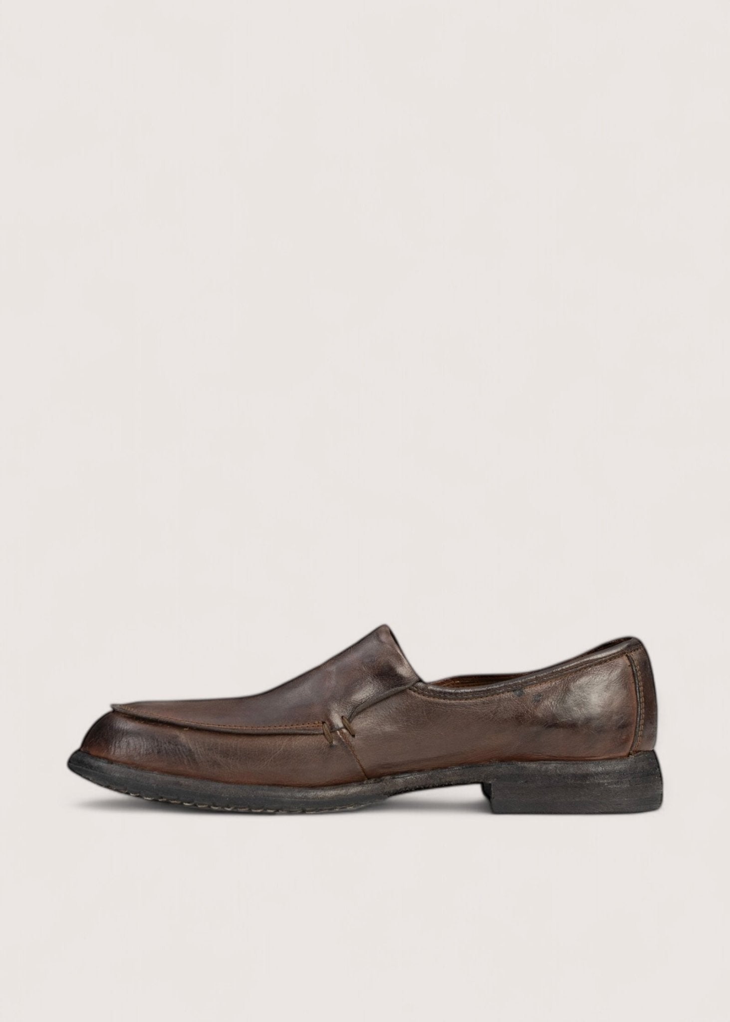 Klassisk herre loafer lavet i vasket kalveskind, farve hasselnød. Skoen har rund snude og lavet på skindsål betrukket med slidstærkt gummi.