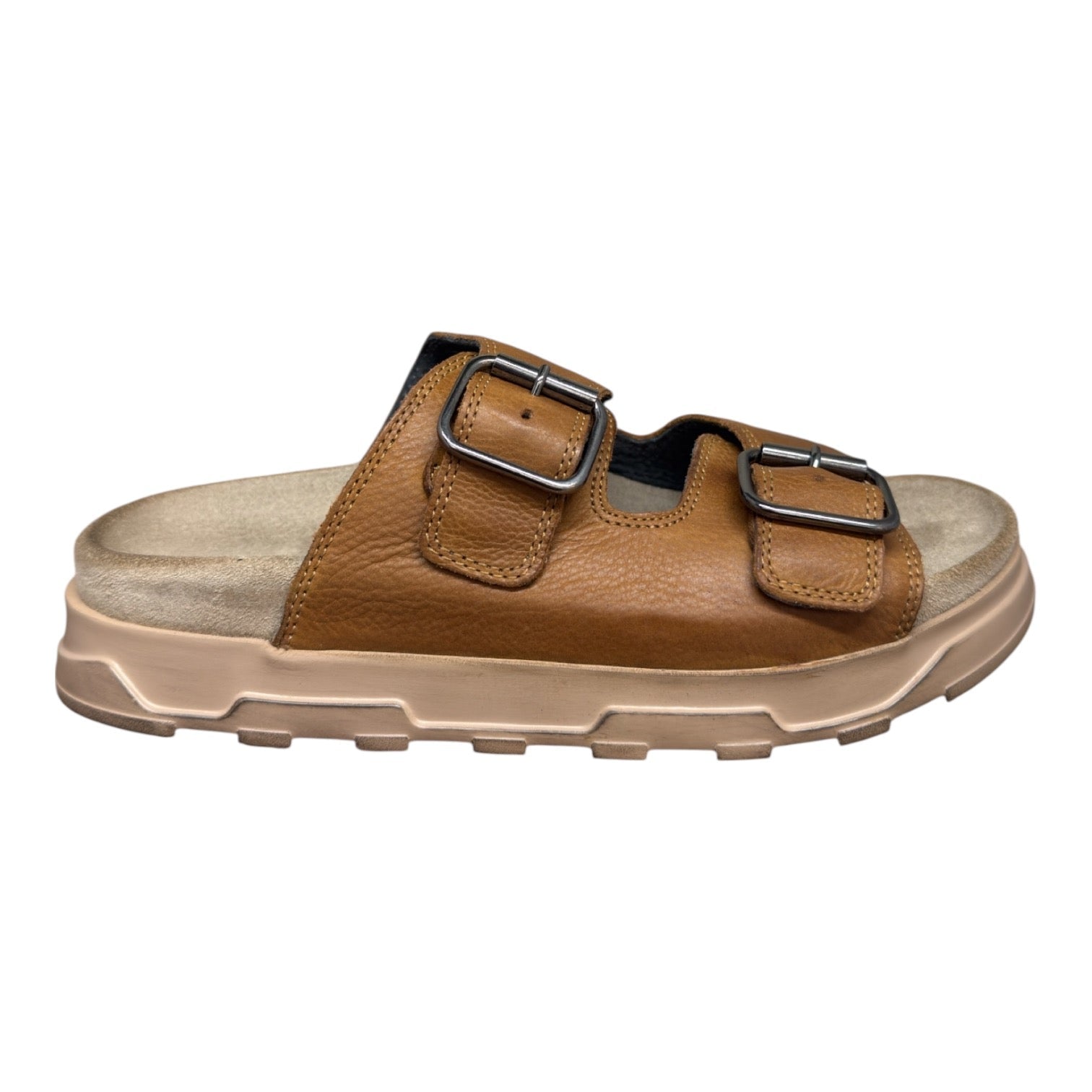 Sandalen er lavet i skind og er foret med svineskind. Sålen er en micro sål.
