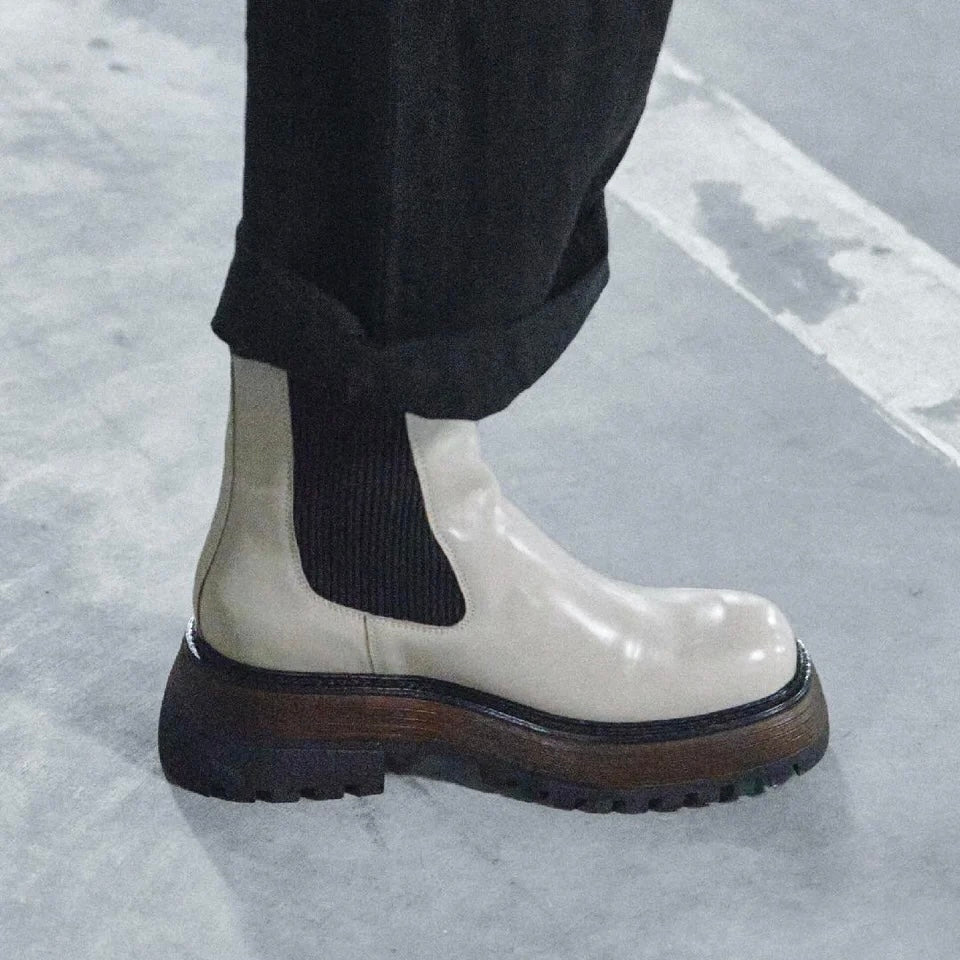 Smart chelseastøvle med en flot chunky sål med brune nuancer. Lavet i shiny polidoskind. Produceret i Portugal.
