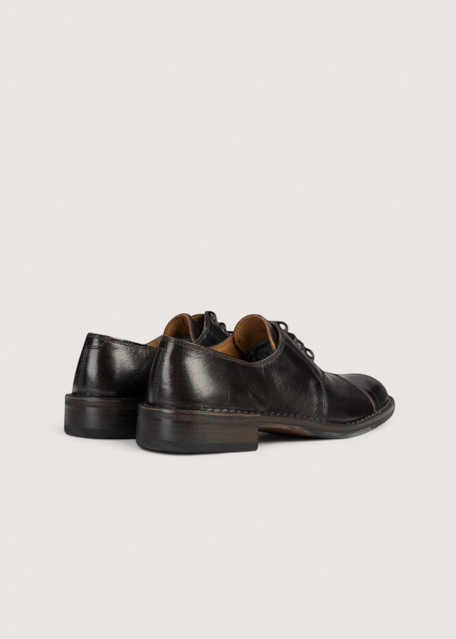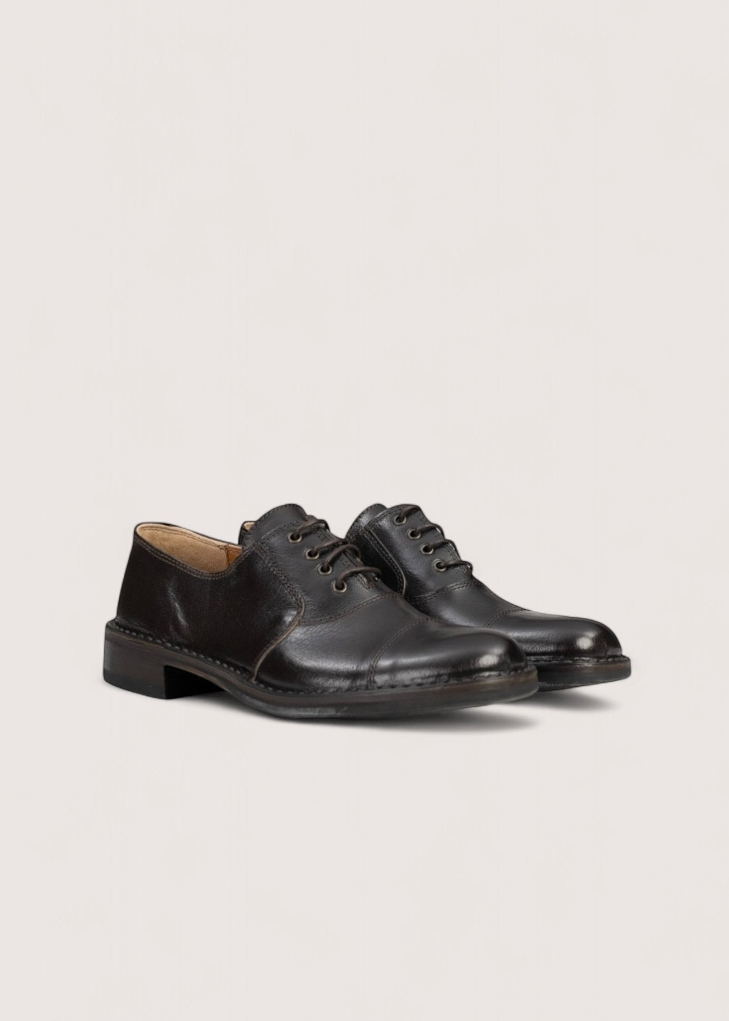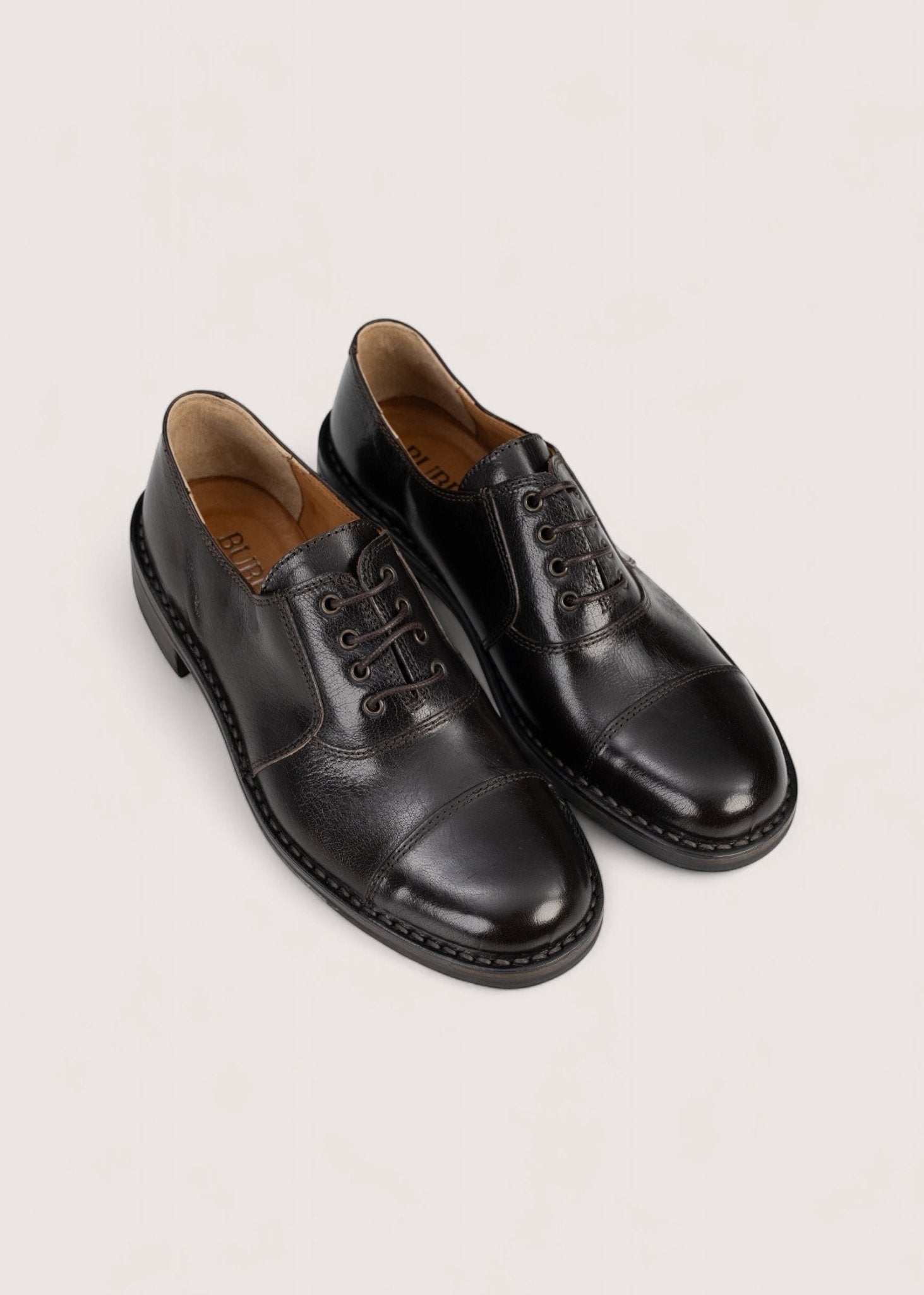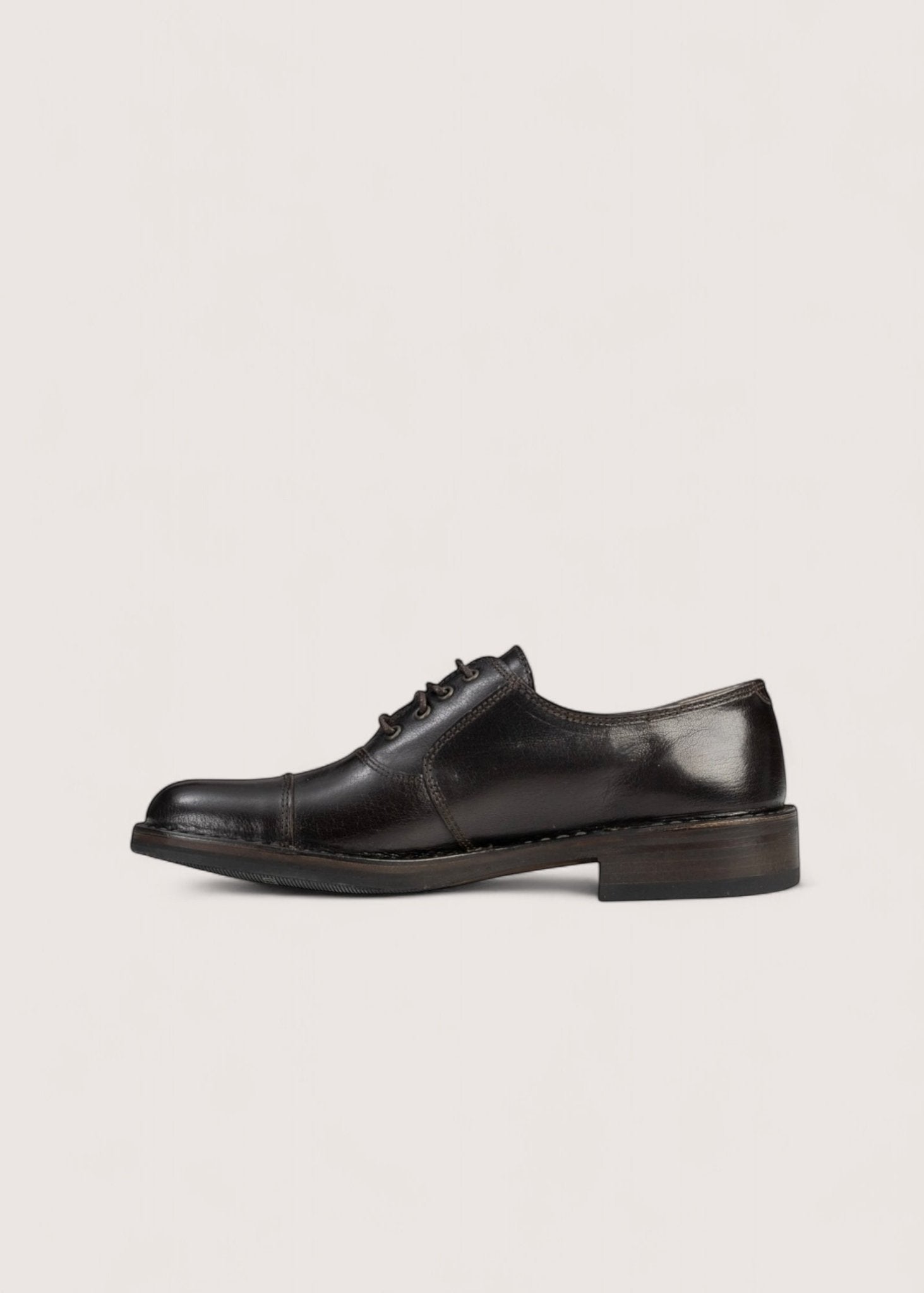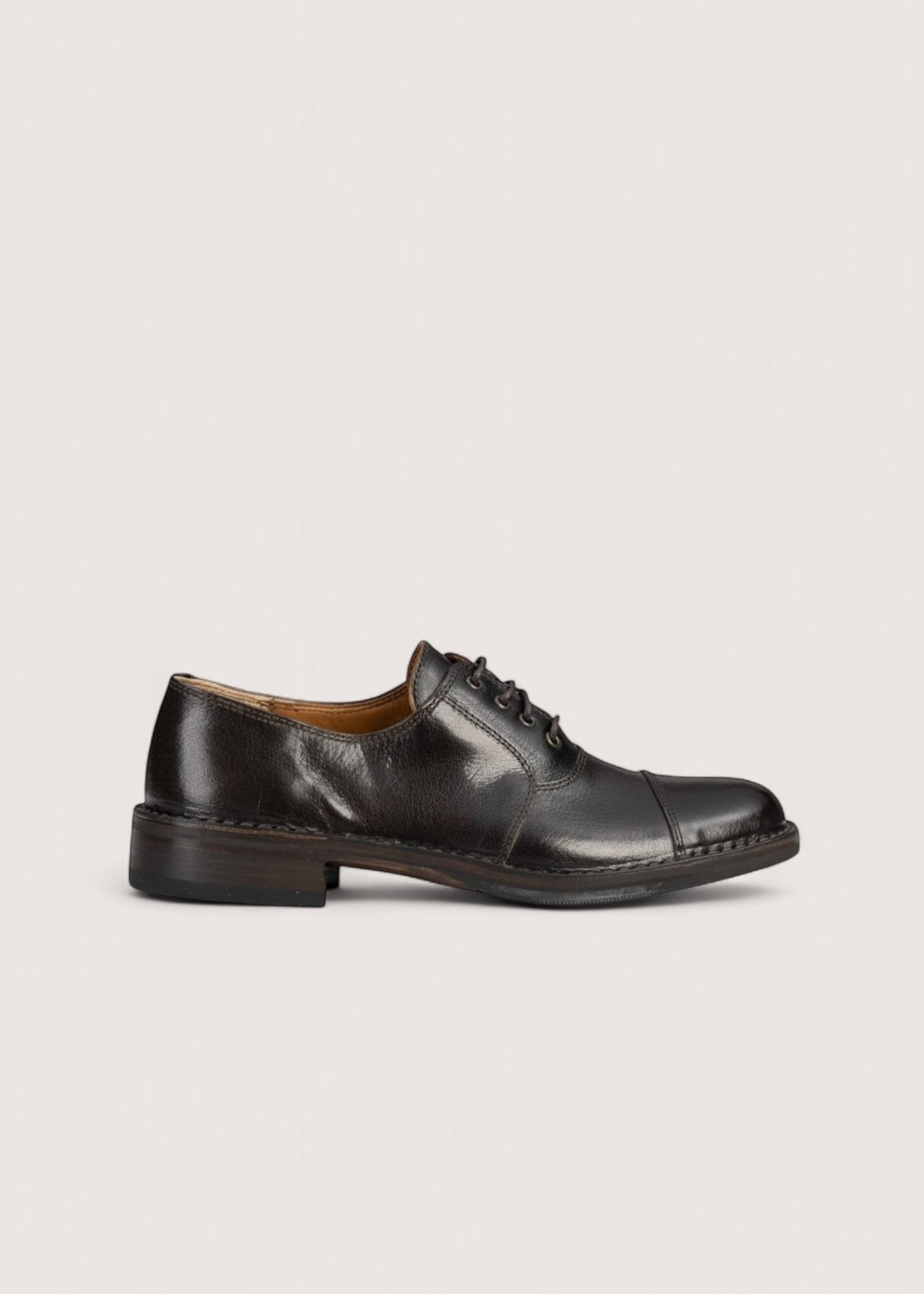 Klassisk herreinspireret snøresko i flot mørkebrunt skind. Skoen er både fin til buks og til kjole.