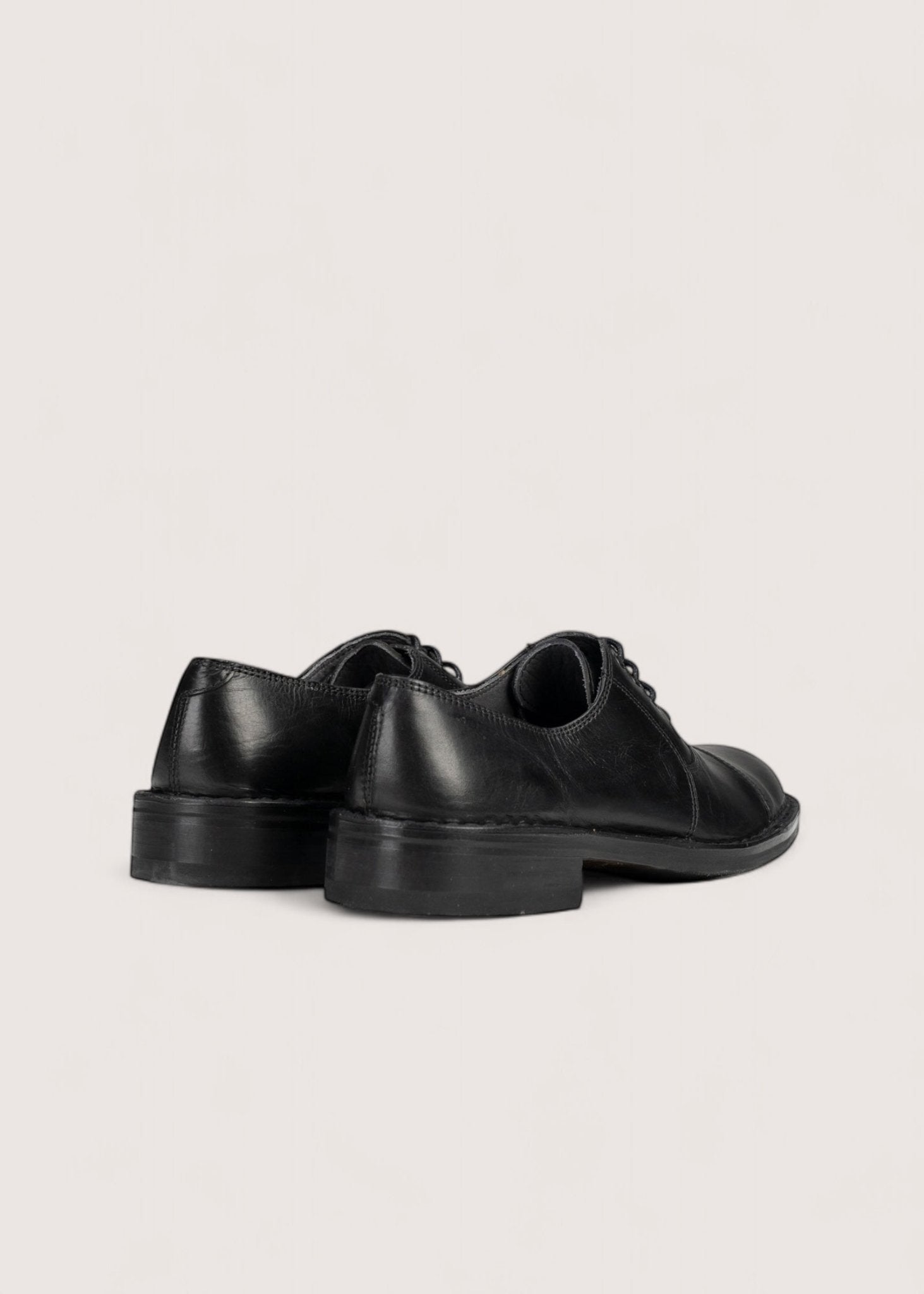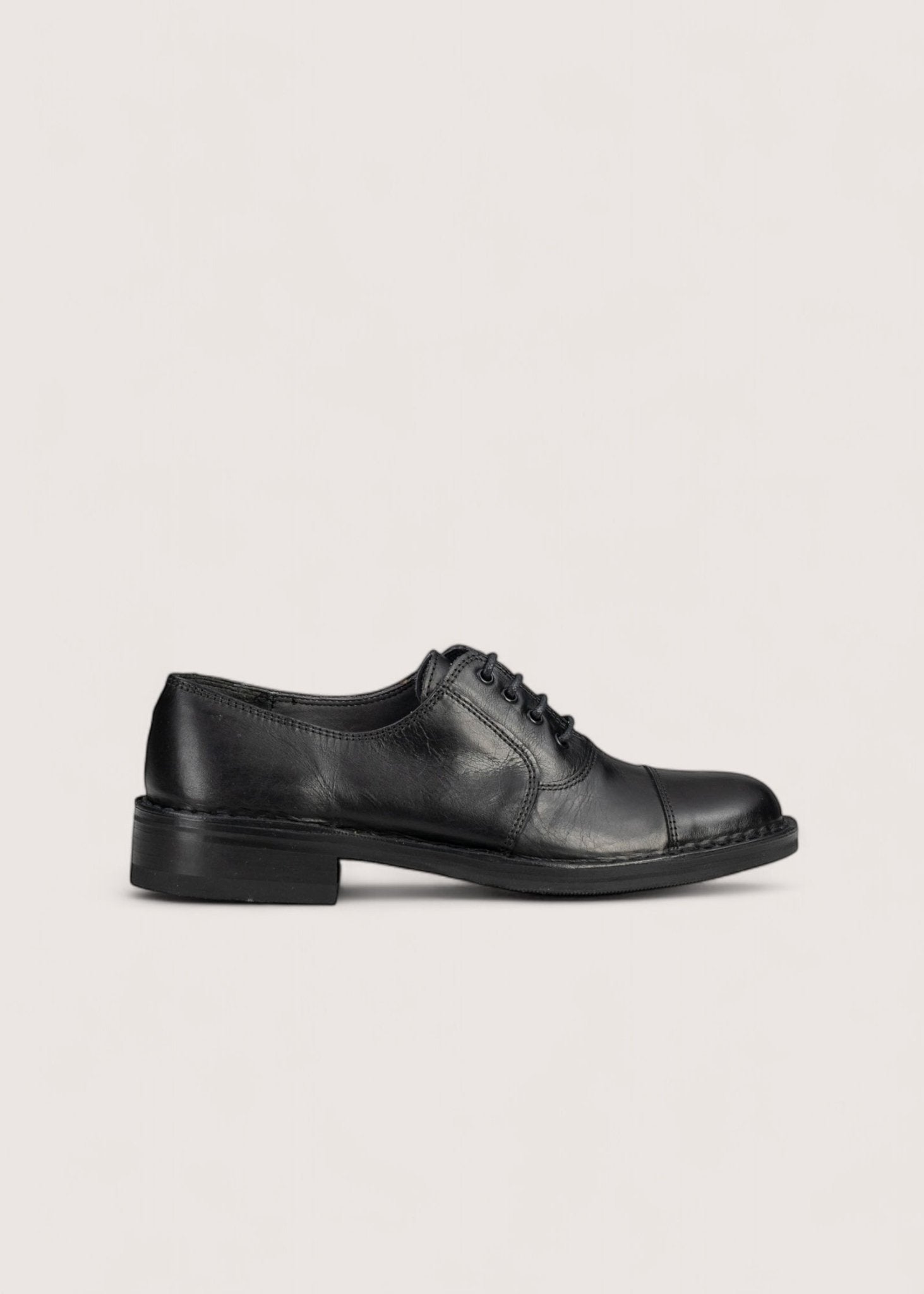 Klassisk herreinspireret snøresko i sort skind. Skoen er både fin til buks og til kjole.