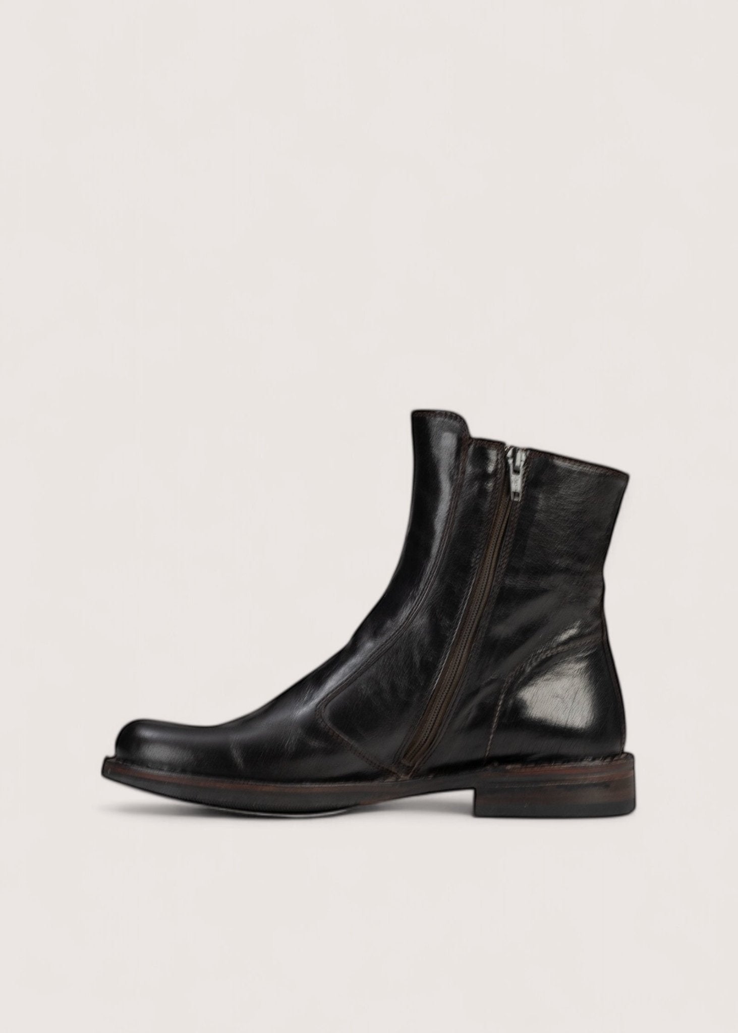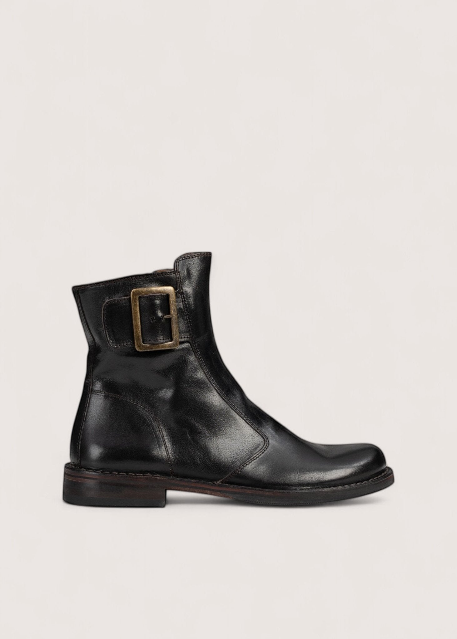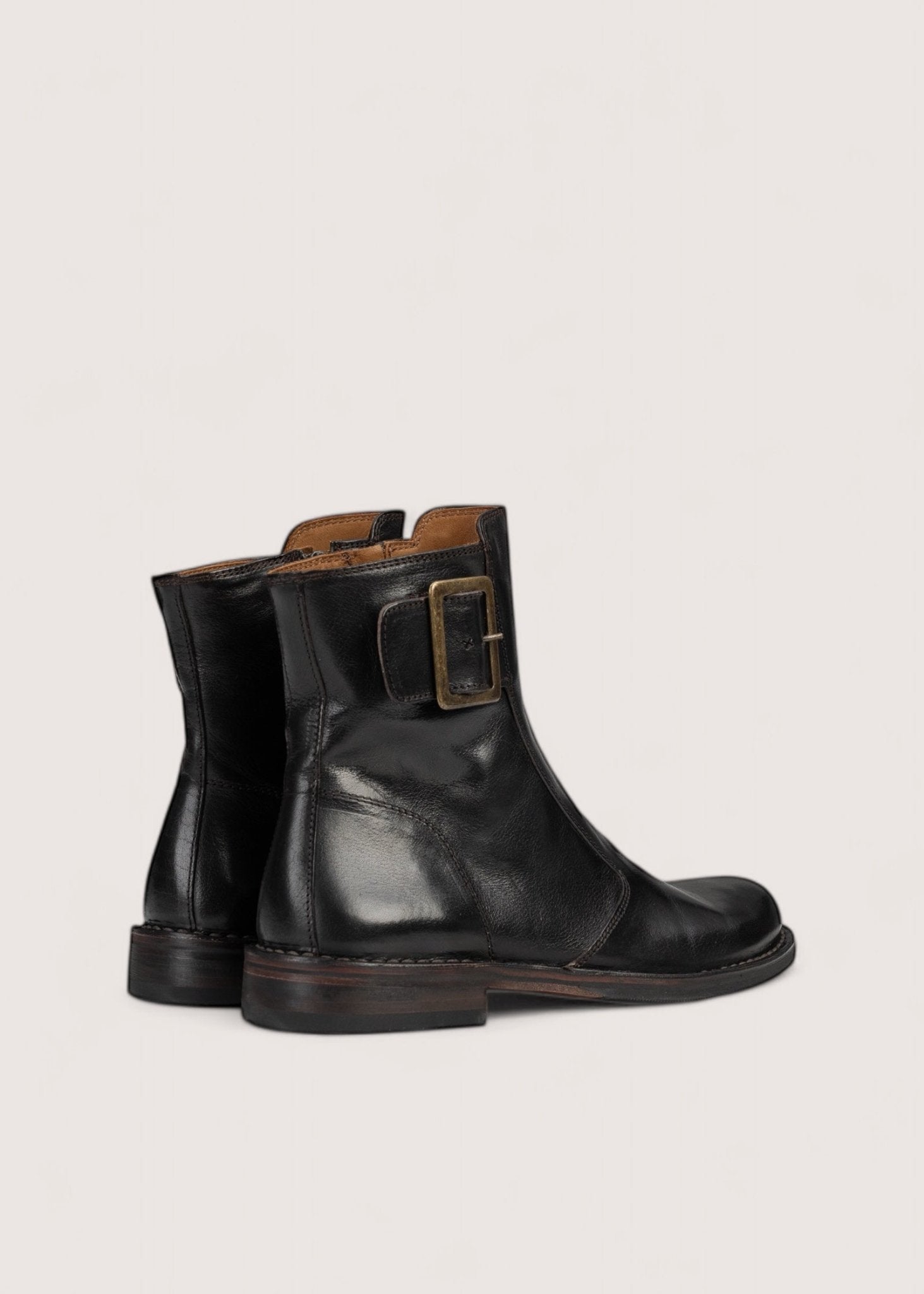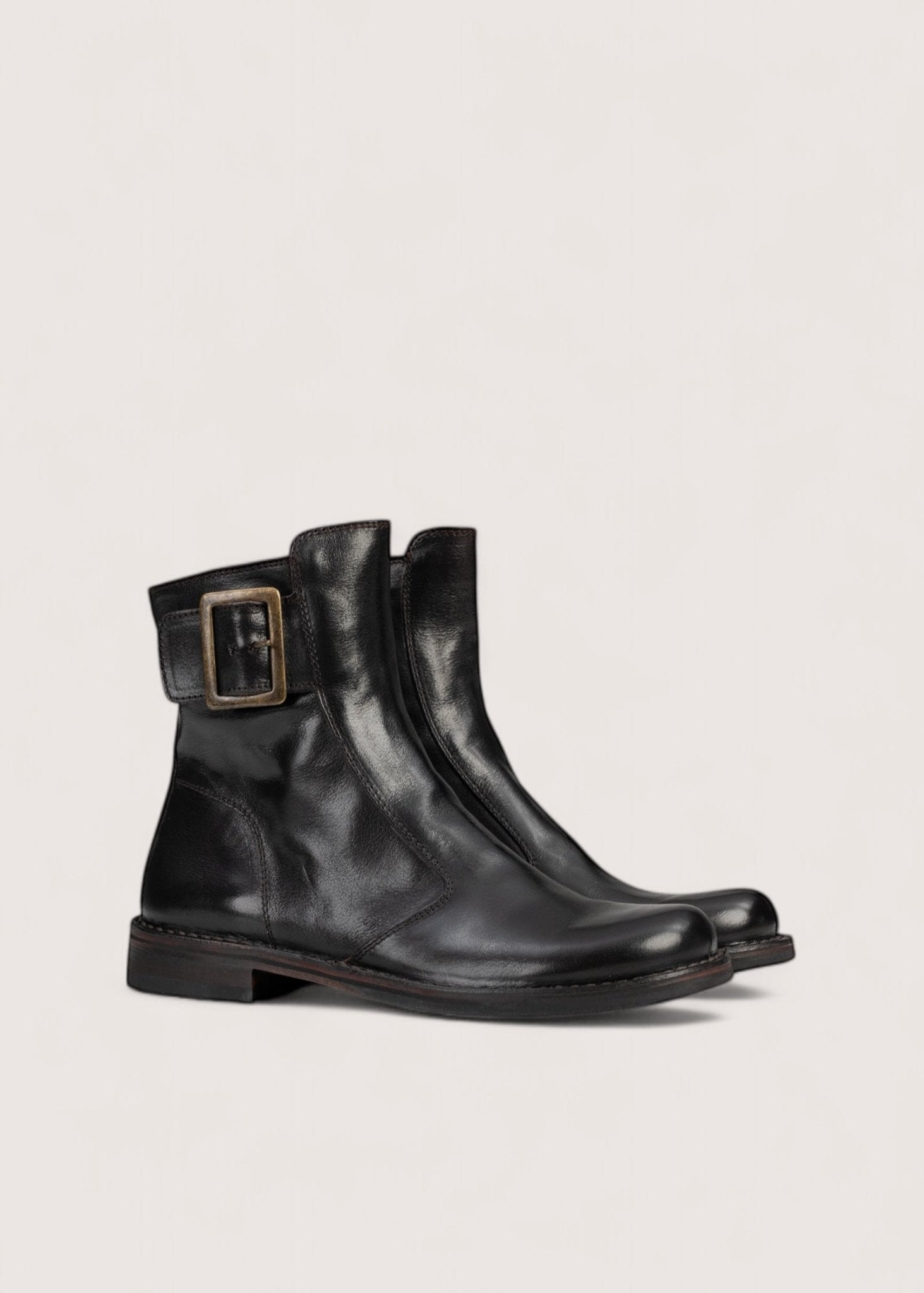 Klassisk støvle med stort dekorativ spænde og indvendig lynlås. Da støvlerne er et naturprodukt, kan skindet variere i farve og struktur. Håndsyet i Italien. OBS! Spændet kan variere en smule i udseende.