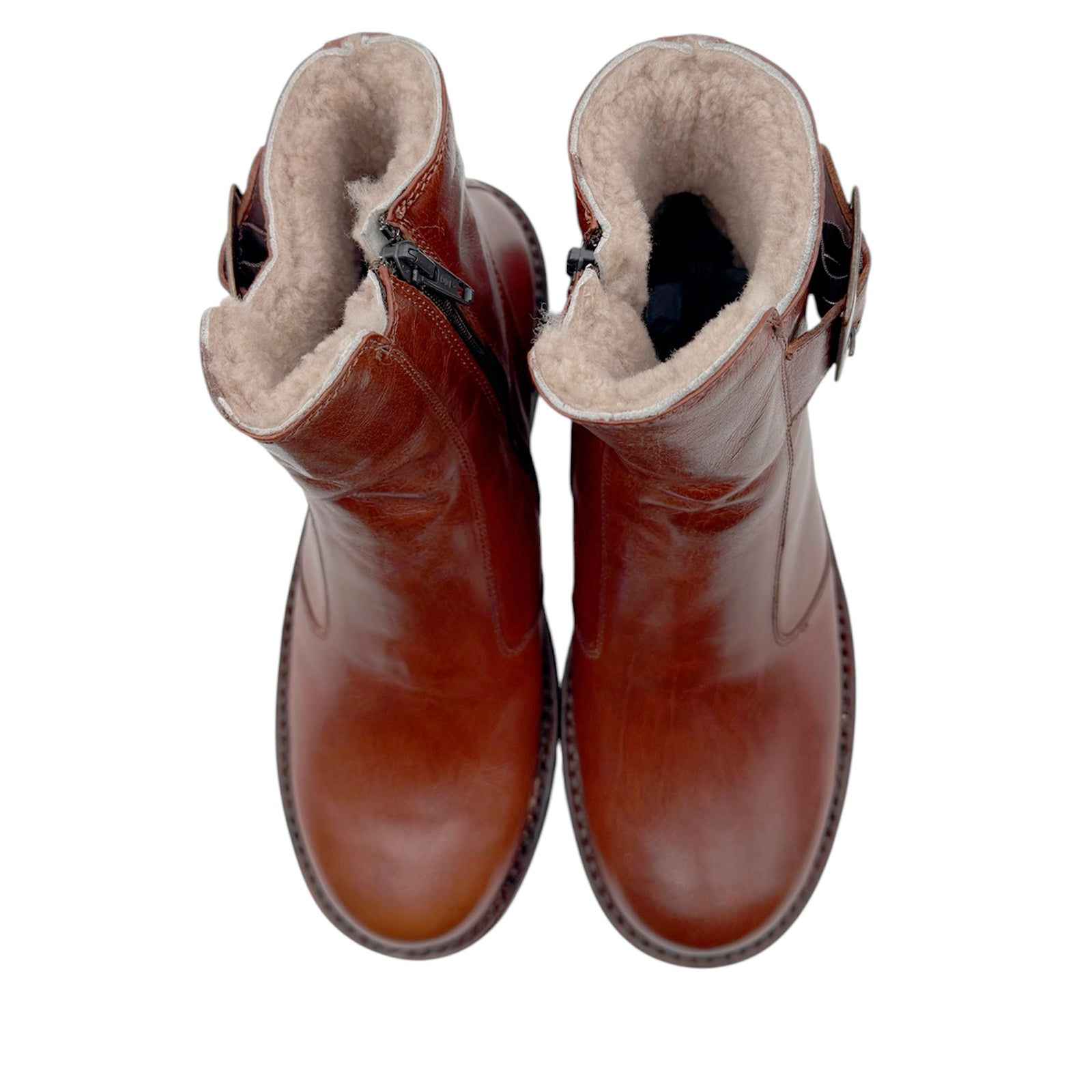 Bubetti 2047 - bredere cognac Klassisk støvle med spænde og lynlås, uld foret