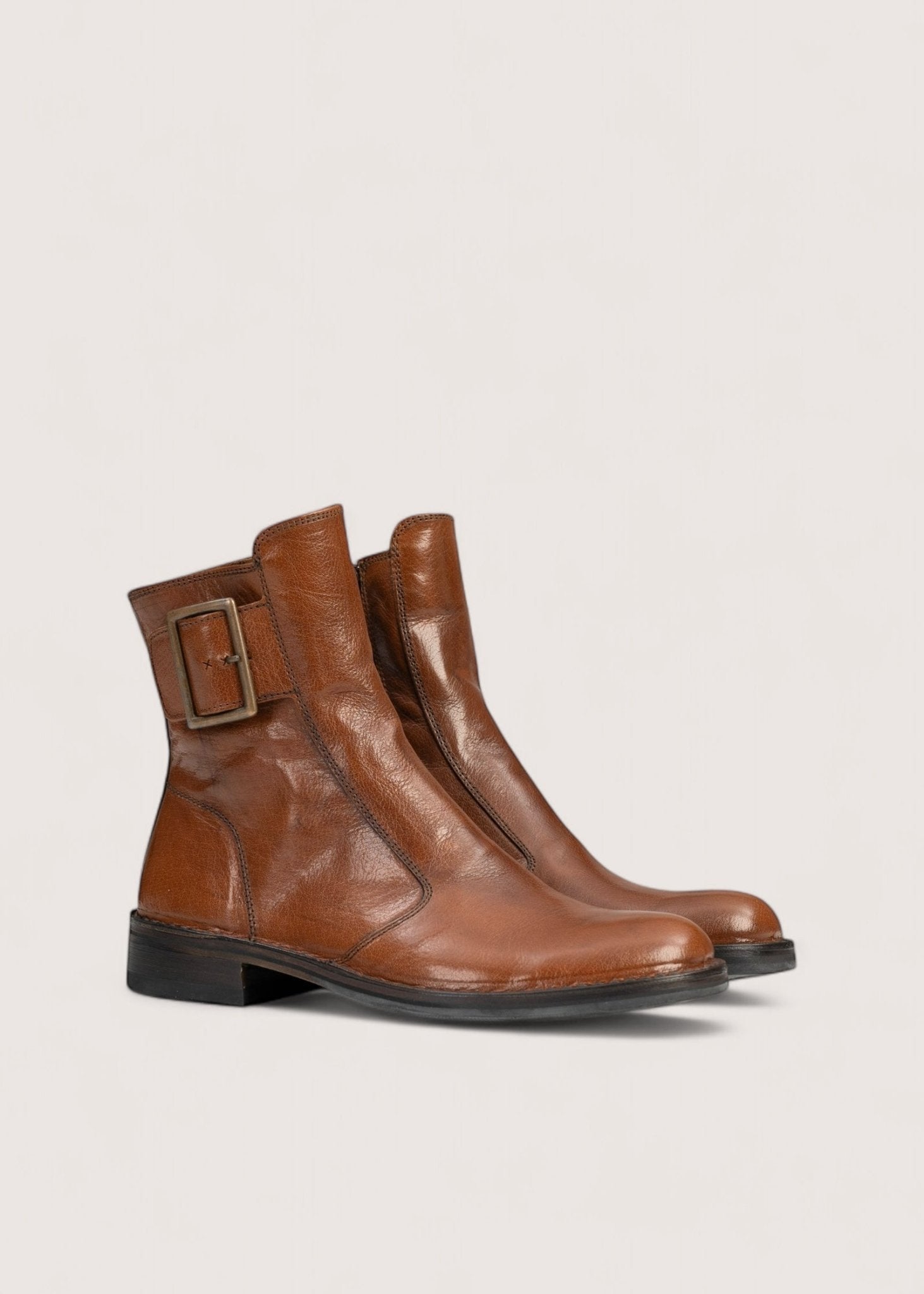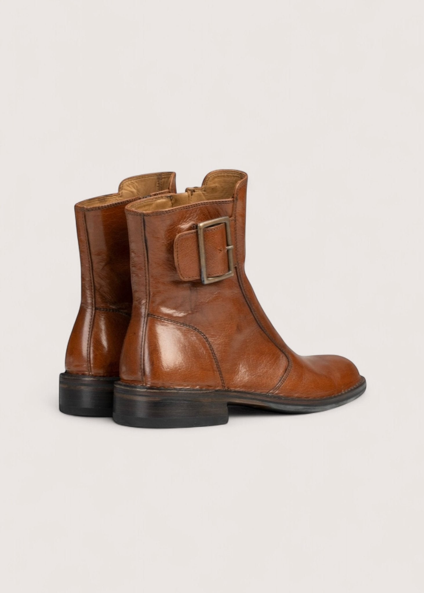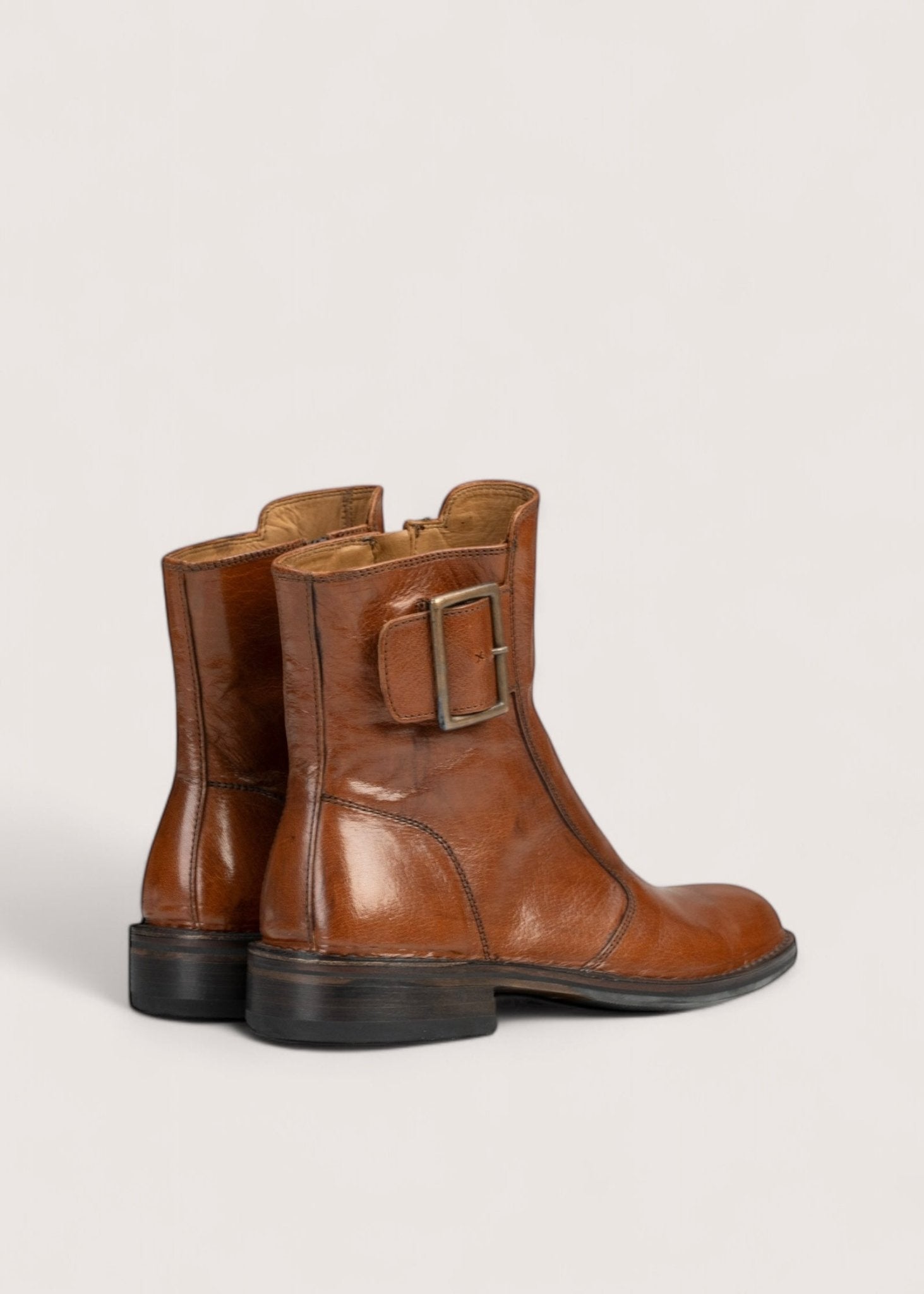 Klassisk støvle med stort dekorativ spænde og indvendig lynlås. Da støvlerne er et naturprodukt, kan skindet variere i farve og struktur. Håndsyet i Italien. OBS! Spændet kan variere en smule i udseende.