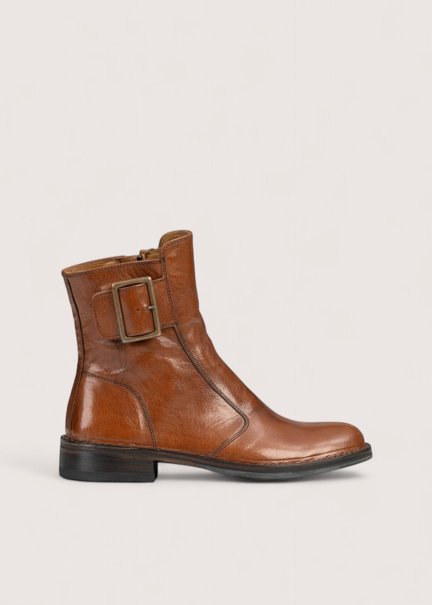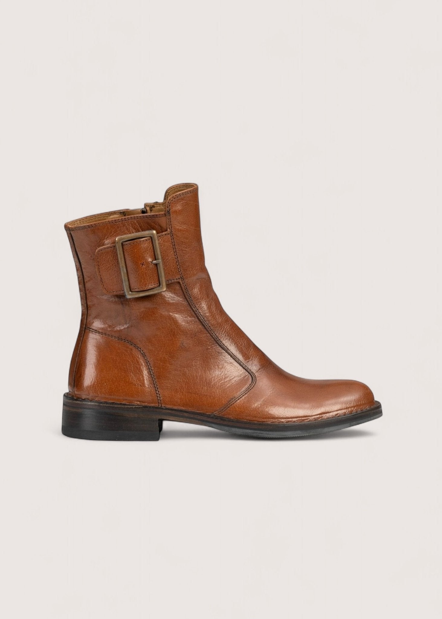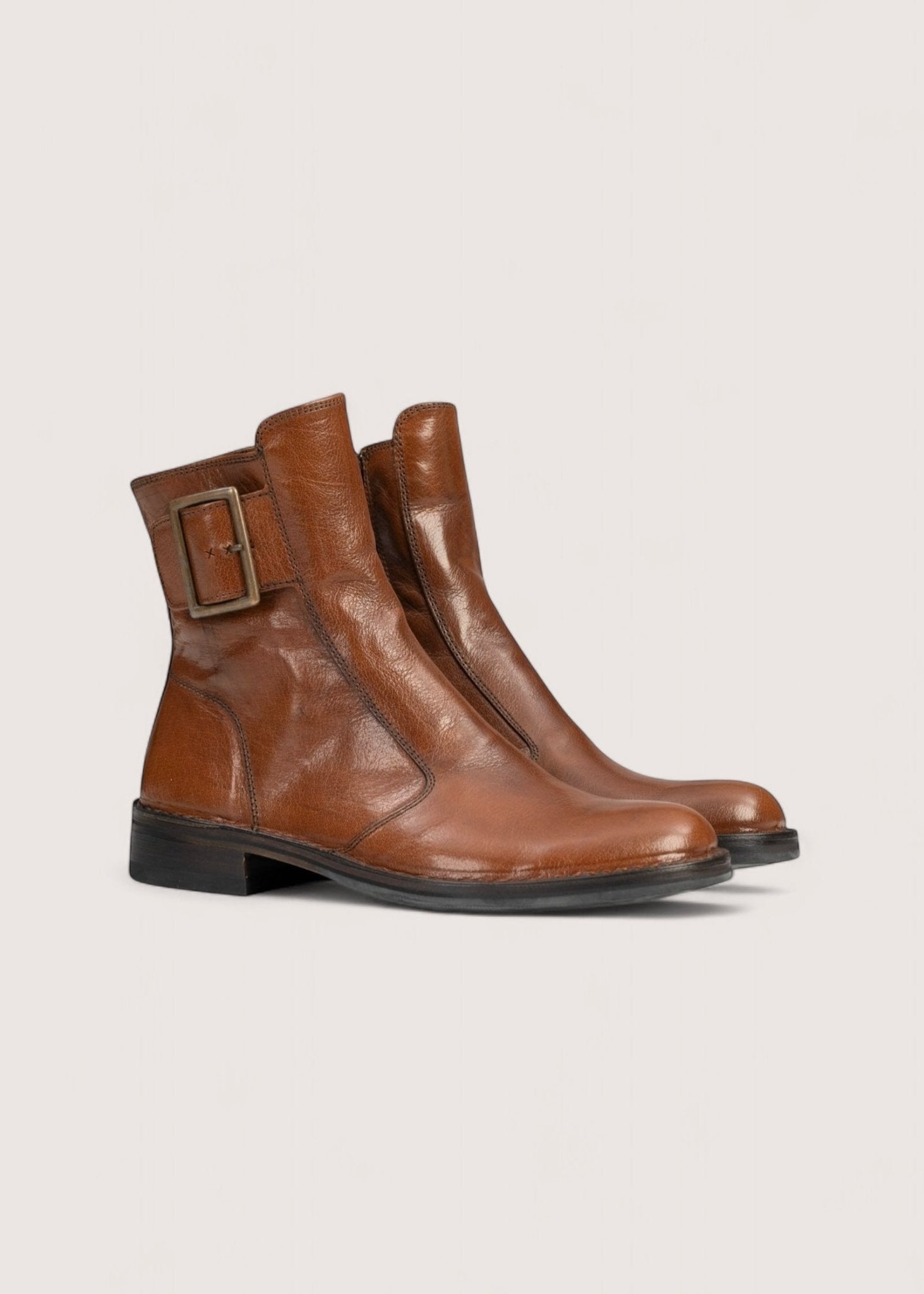 Klassisk støvle med stort dekorativ spænde og indvendig lynlås. Da støvlerne er et naturprodukt, kan skindet variere i farve og struktur. Håndsyet i Italien. OBS! Spændet kan variere en smule i udseende.