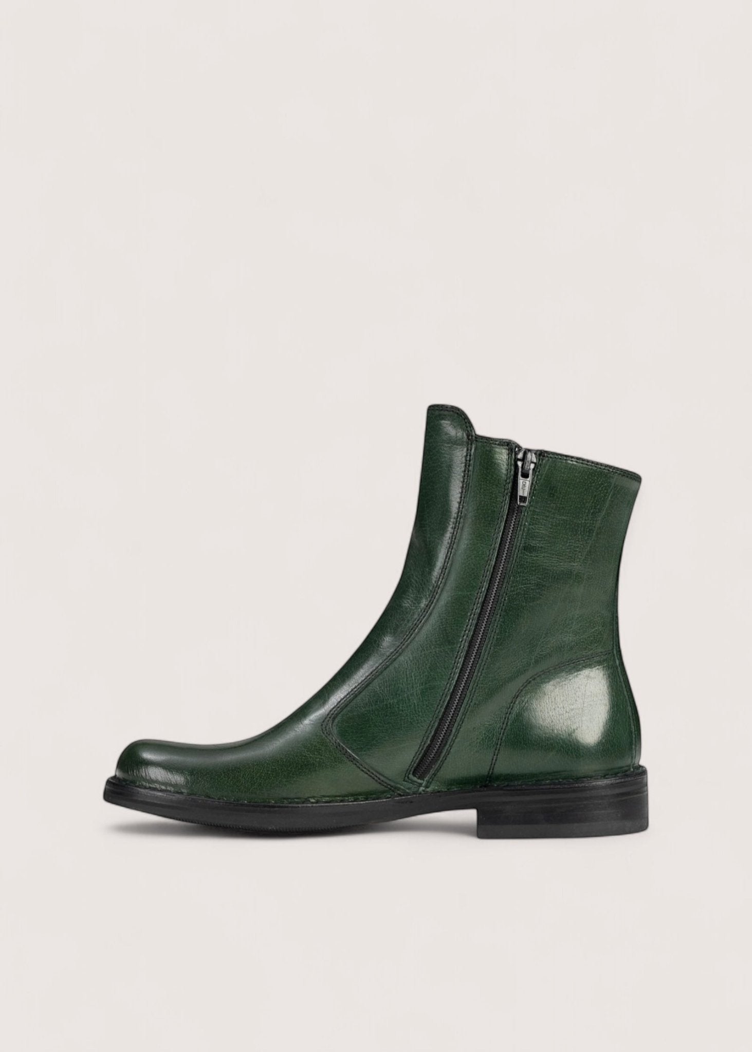 Klassisk og stilren damestøvle med indvendig lynlås. Da støvlerne er et naturprodukt, kan skindet variere i farve og struktur. Håndsyet i Italien.