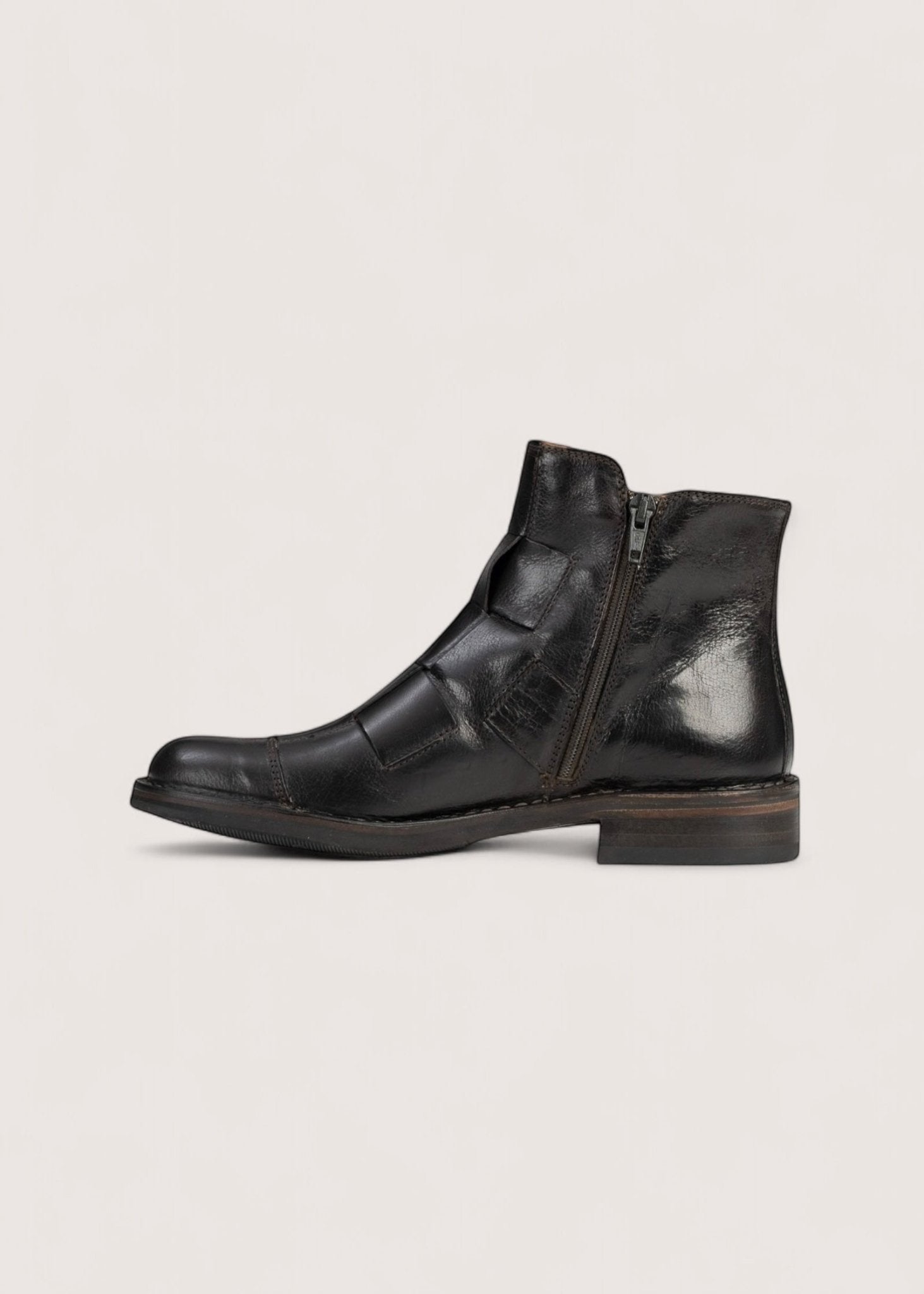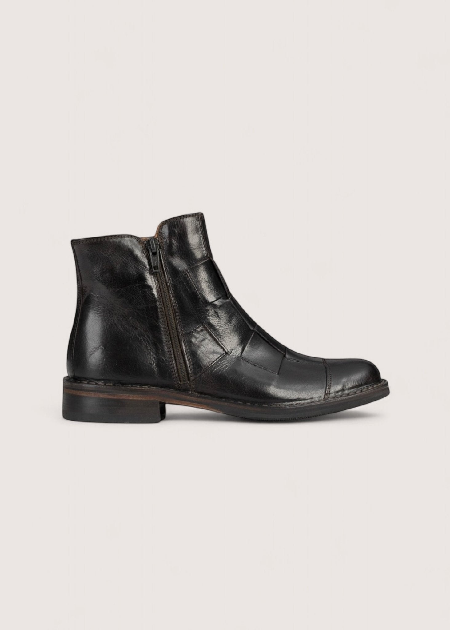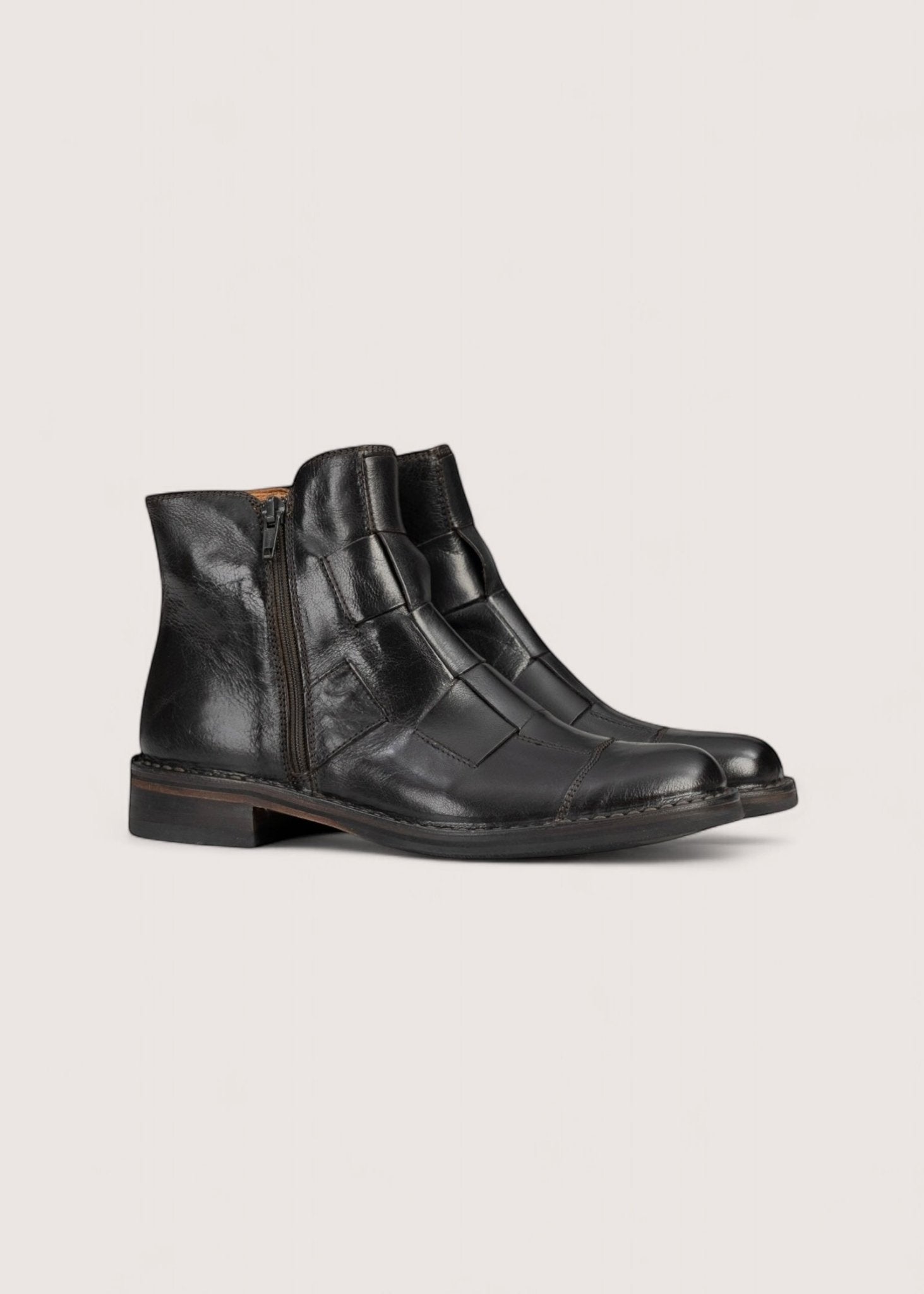 Et af vores stolte og flotte signaturdesigns; den bredflettede støvle. Støvlen er flettet i hånden på gammeldags manér - et lille stykke kunst og en smuk tilføjelse til gaderoben. Støvlen fås også på en bredere læst.