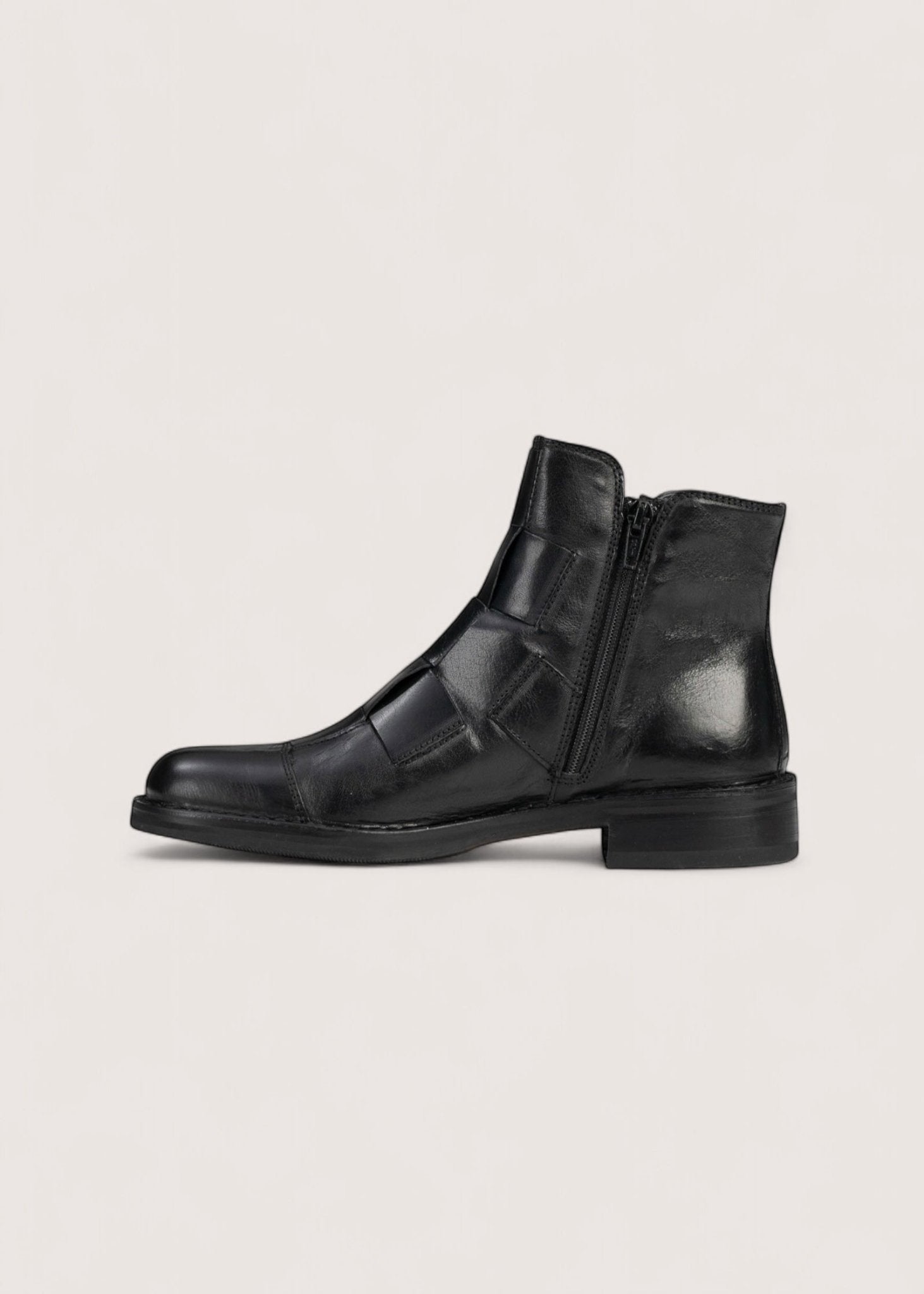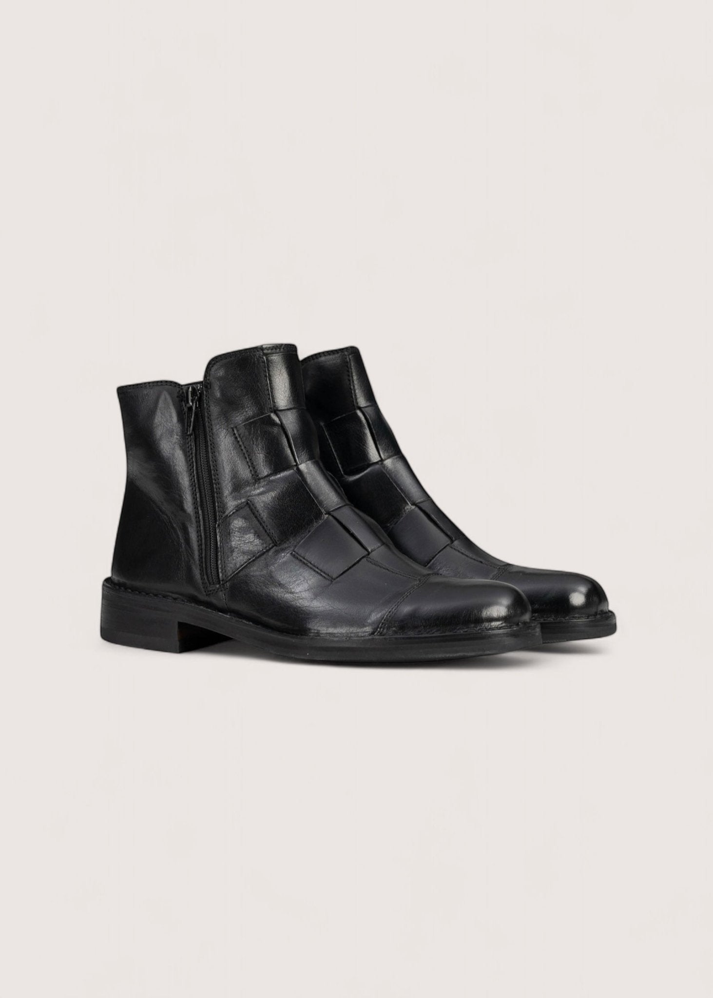 Et af vores stolte og flotte signaturdesigns; den bredflettede støvle. Støvlen er flettet i hånden på gammeldags manér - et lille stykke kunst og en smuk tilføjelse til gaderoben. Støvlen fås også på en bredere læst.