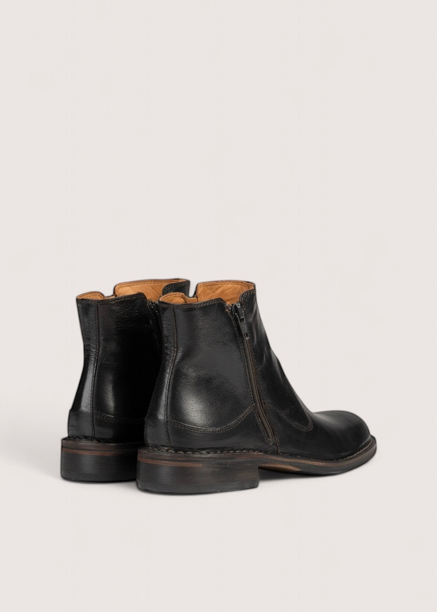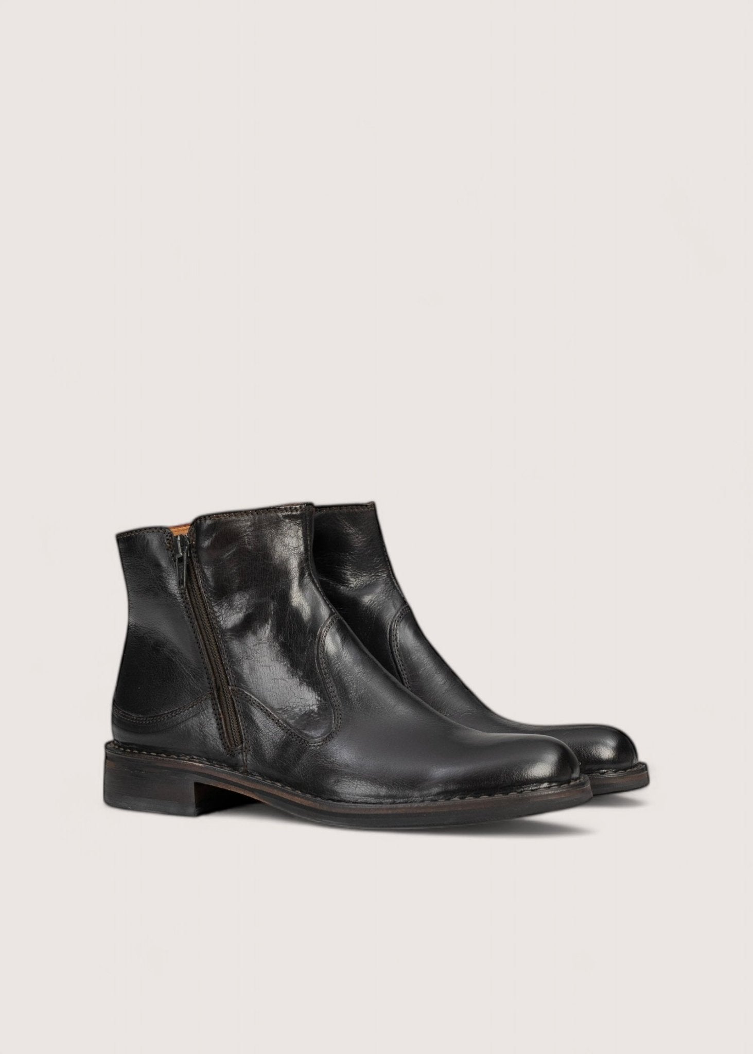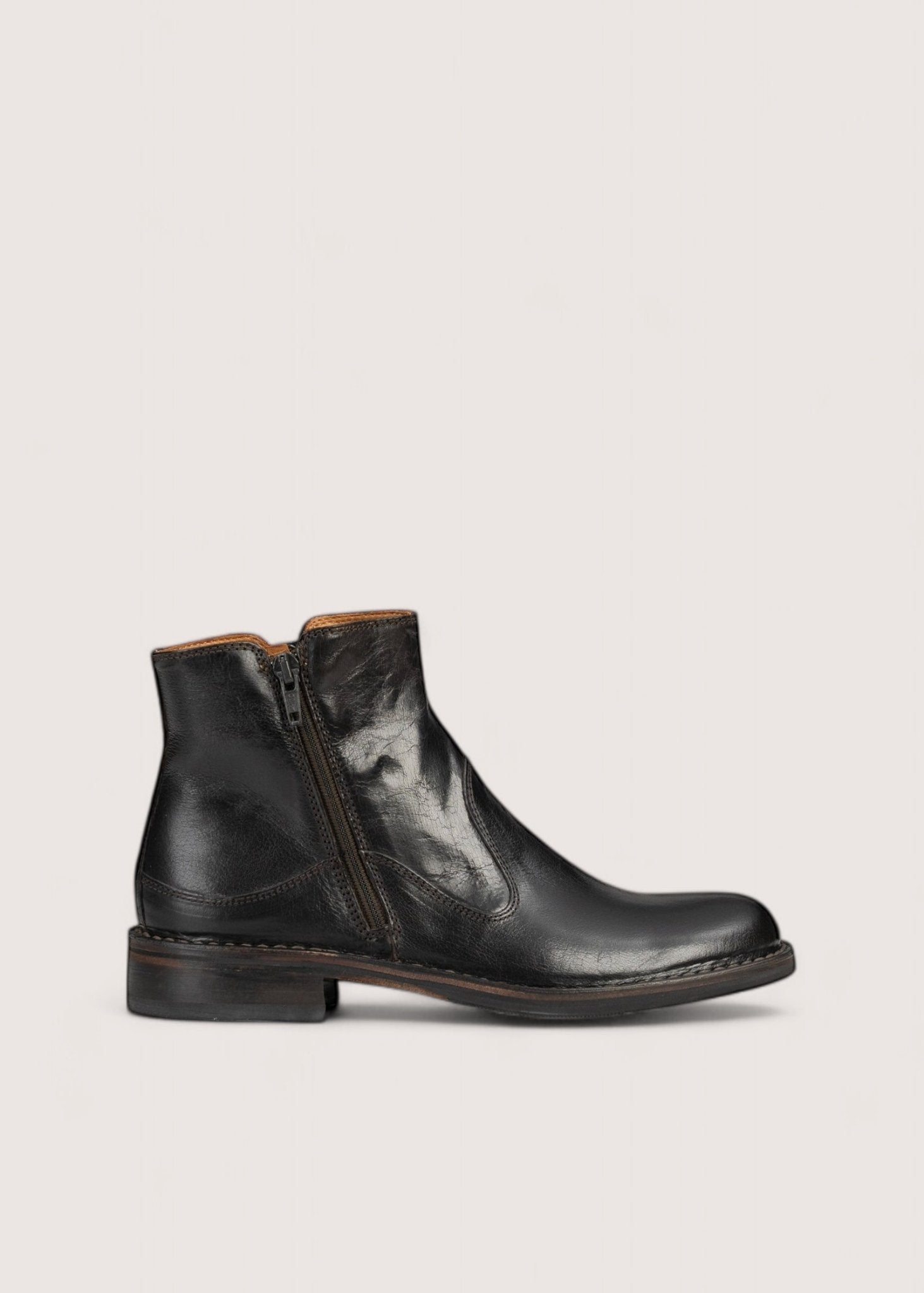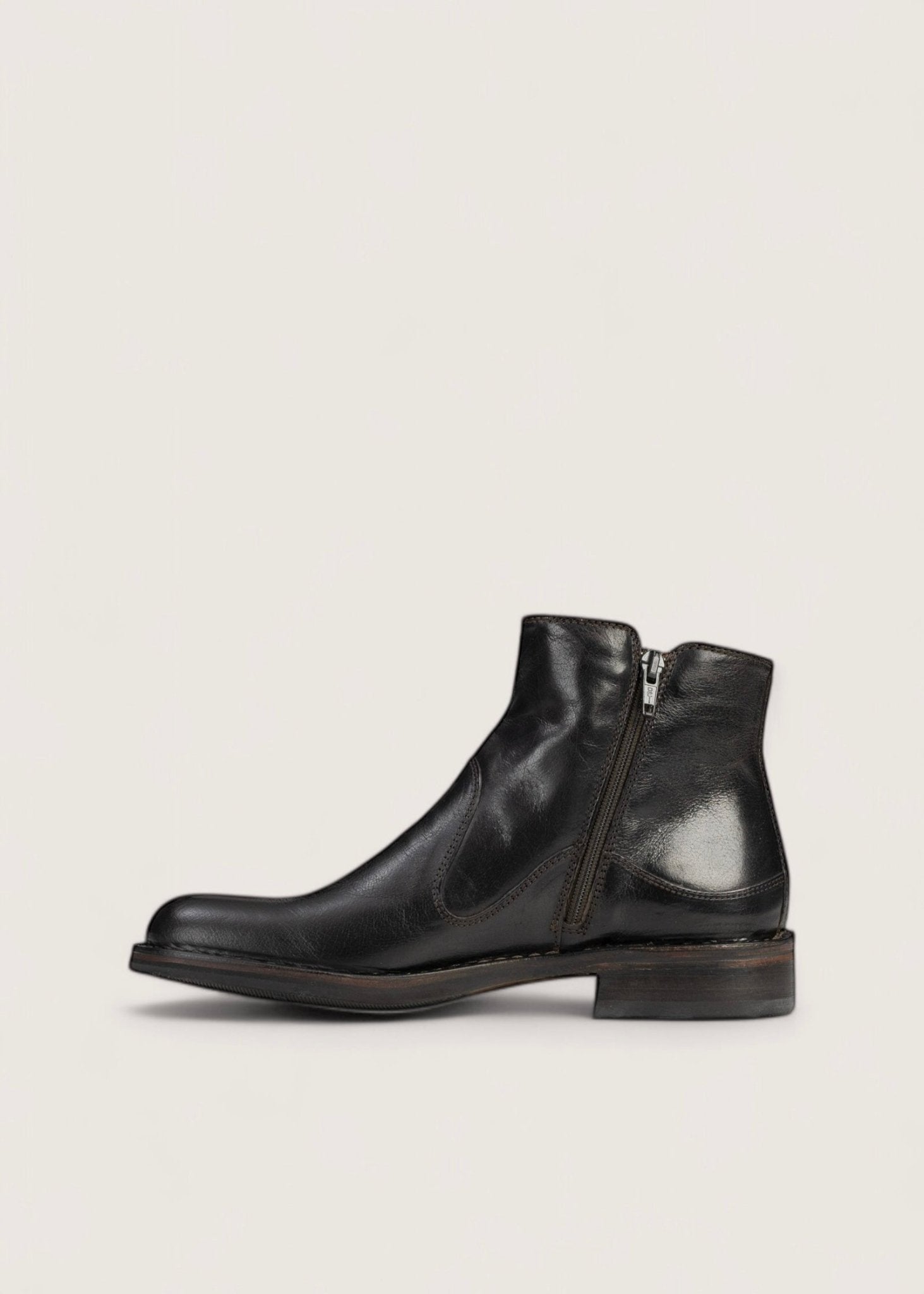 Klassisk Bubetti damestøvle i mørkbrun kalveskind. Støvlen har kort skaft, lynlås i begge sider og lavet på gummisåler.