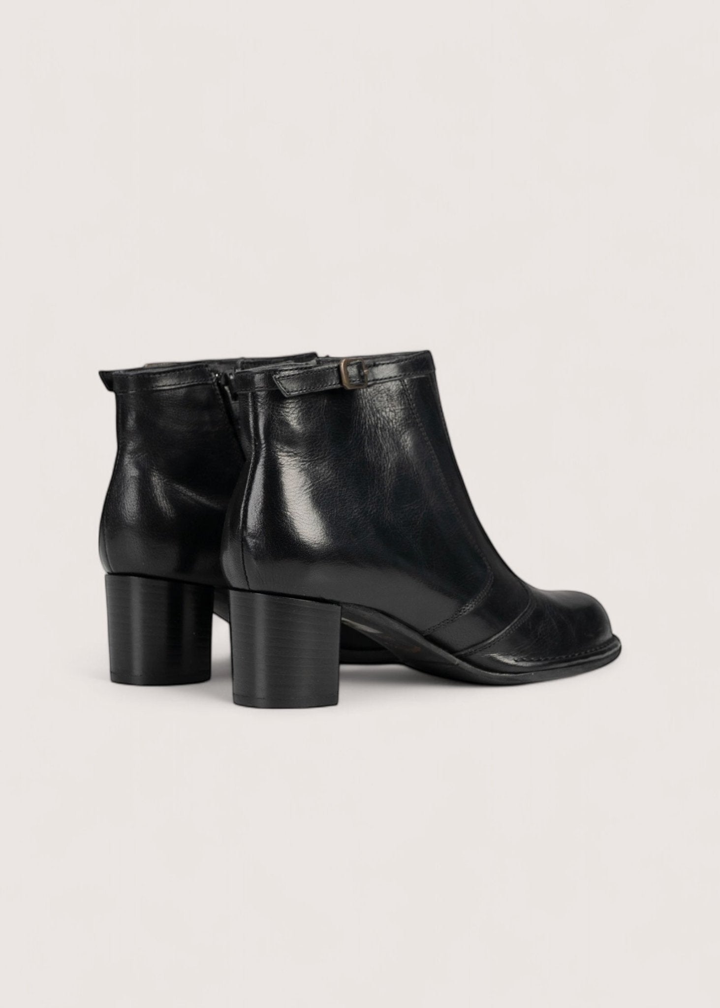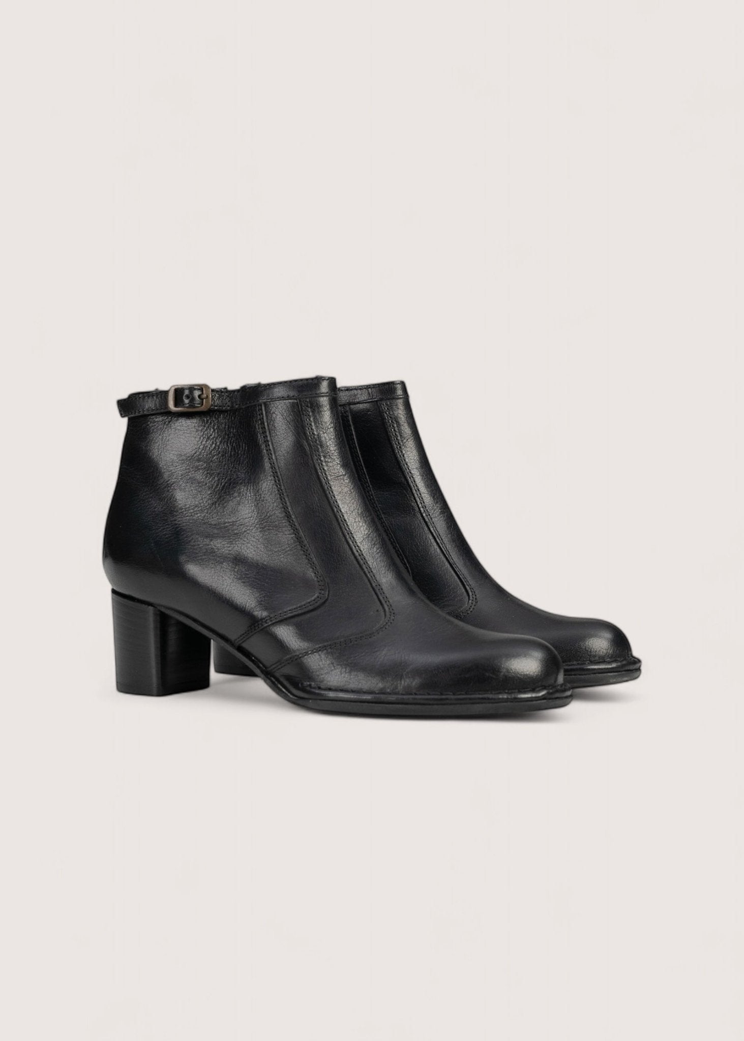 Smuk og elegant hælstøvle med indvendig lynlås og dekorativt spænde på skaftet. Hælen har en højde på 5 cm, der gør, at støvlen egner sig til både hverdag og fest.