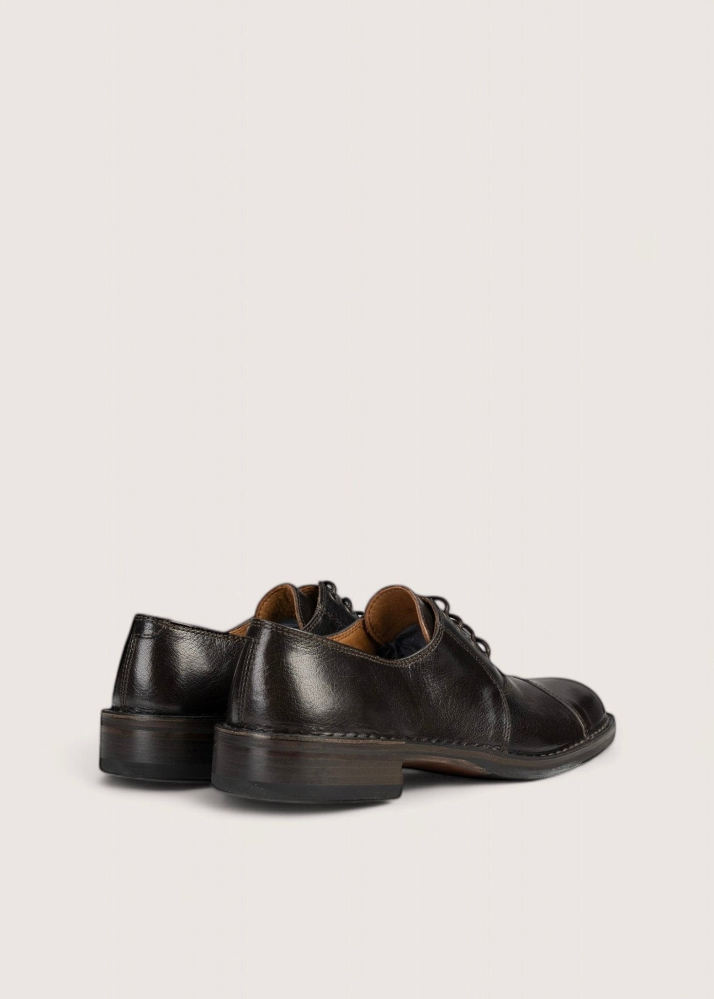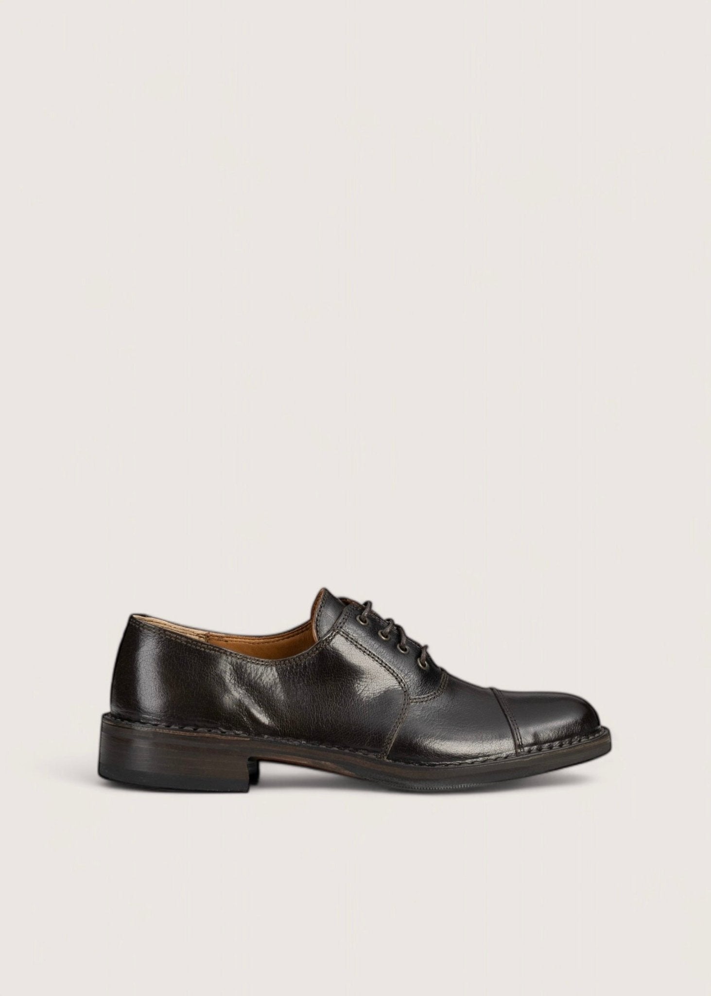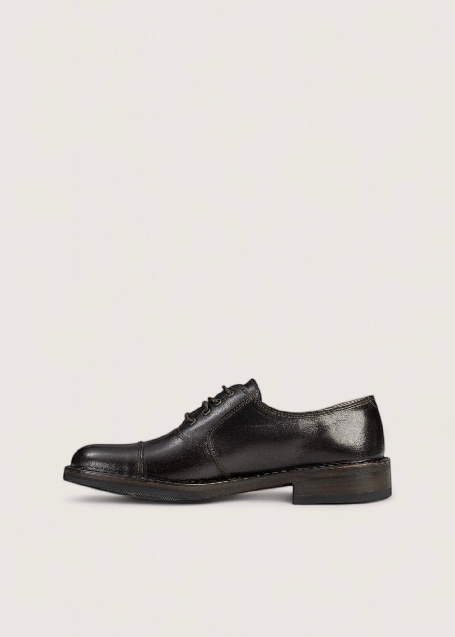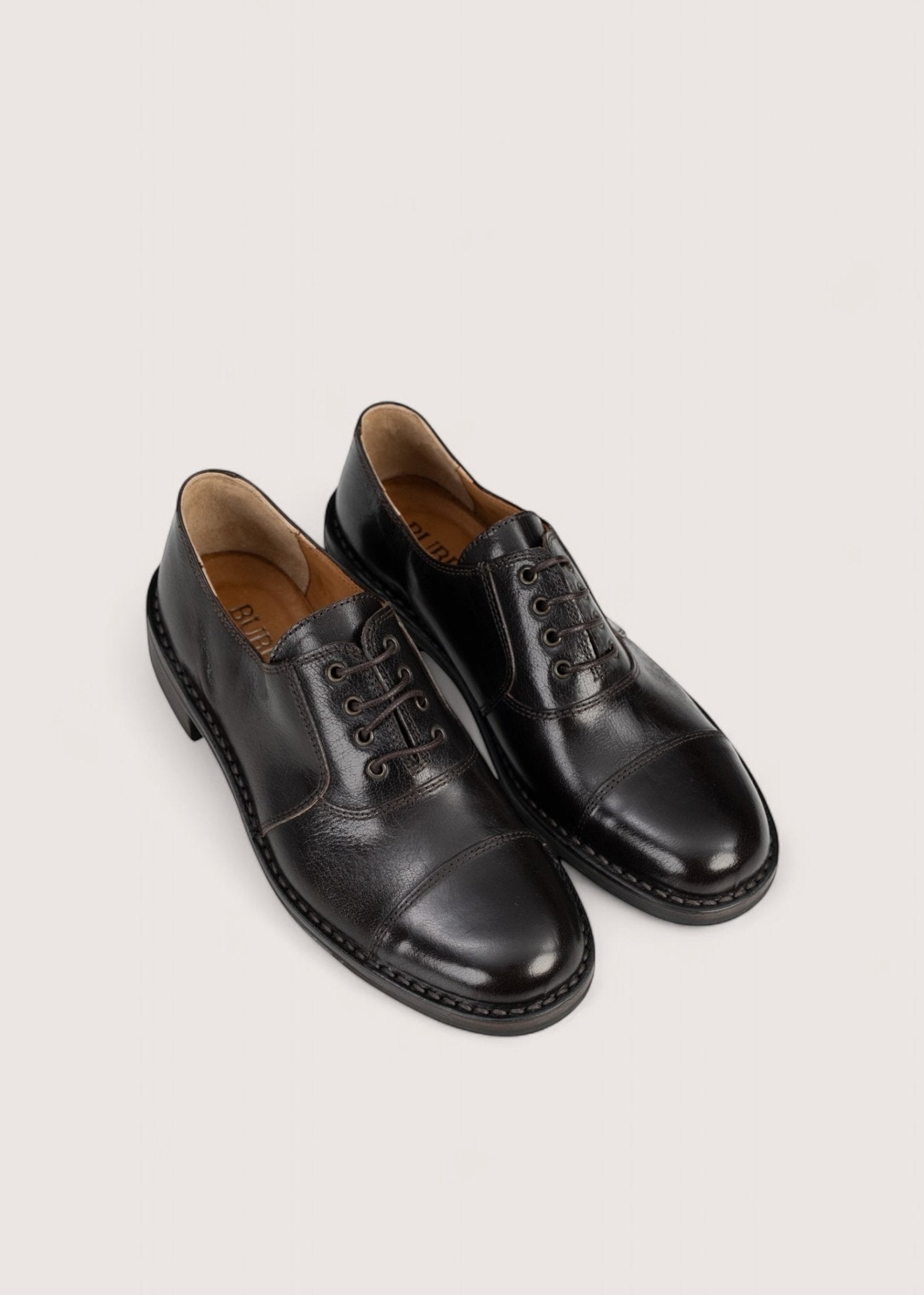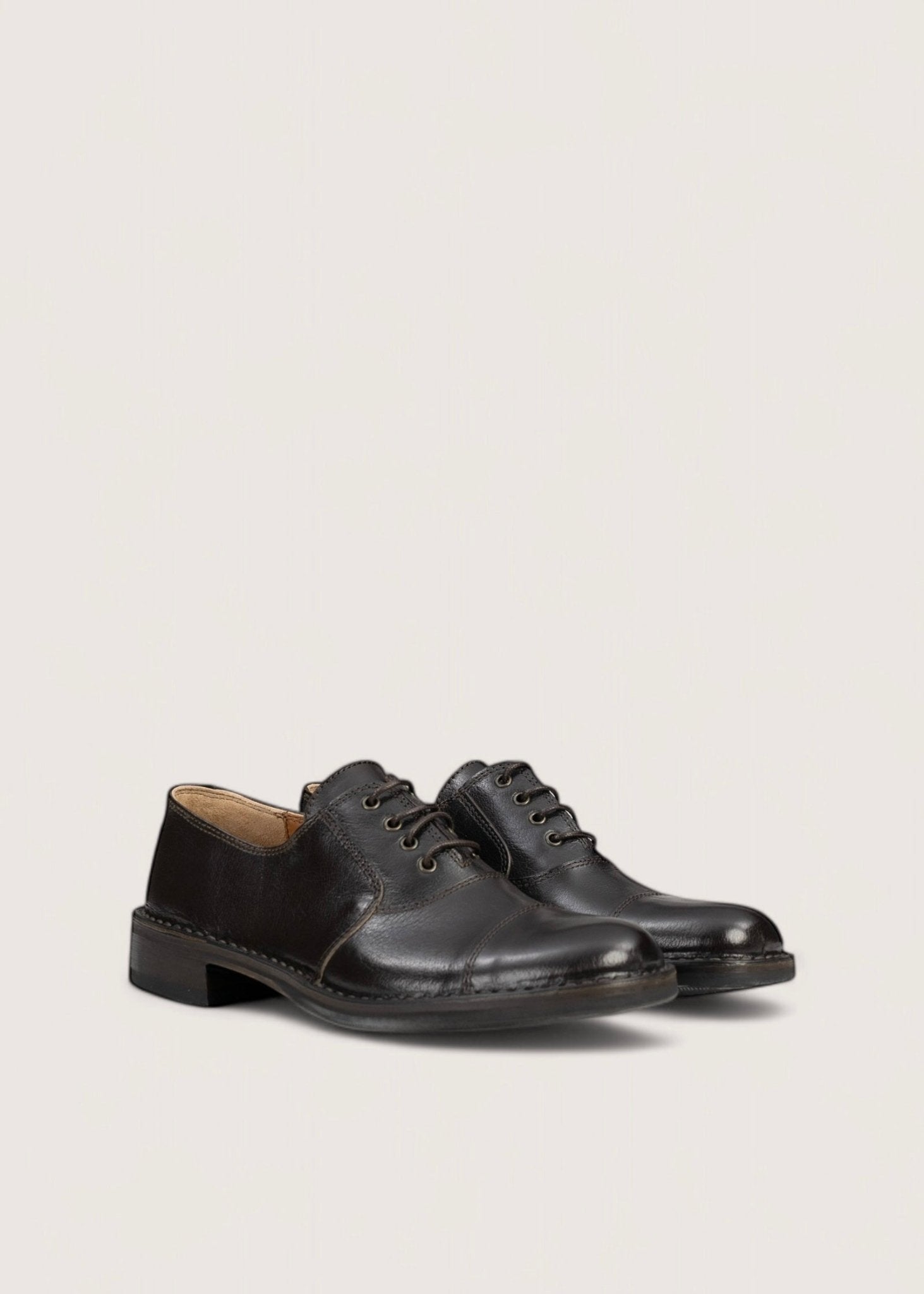 Klassisk snøresko i flot mørkebrunt skind. Skoen er både fin til buks og til kjole.
