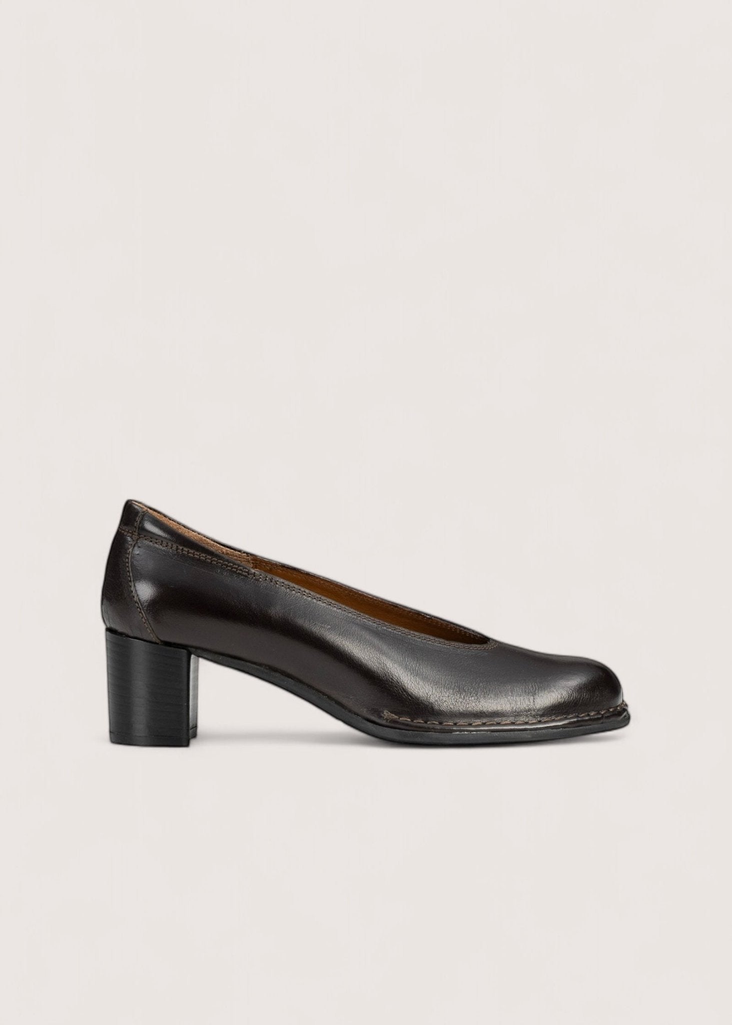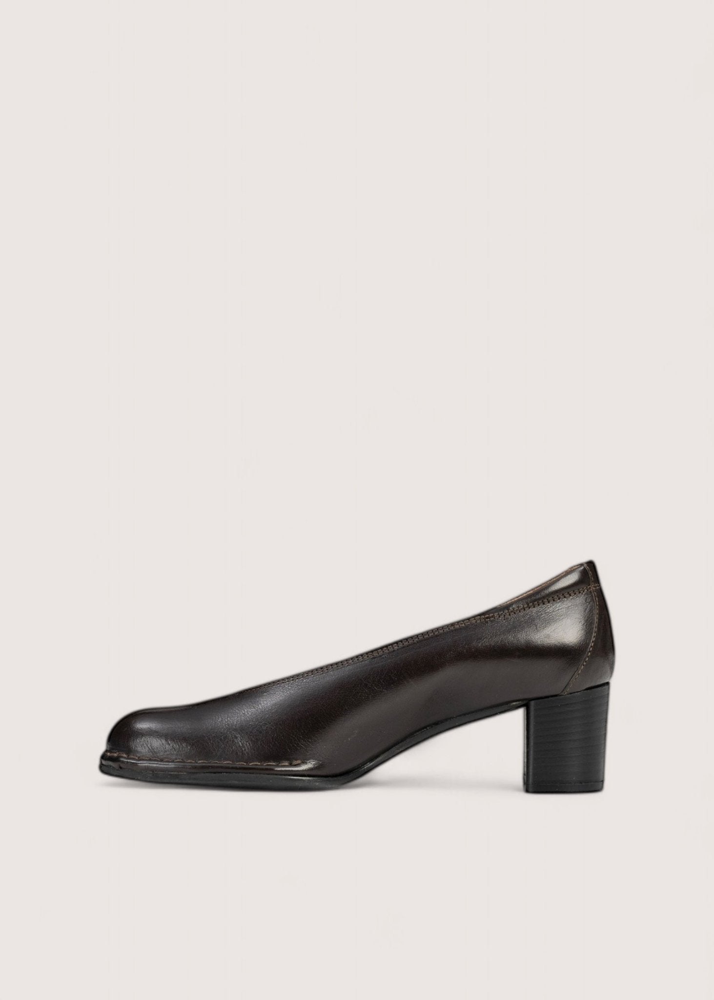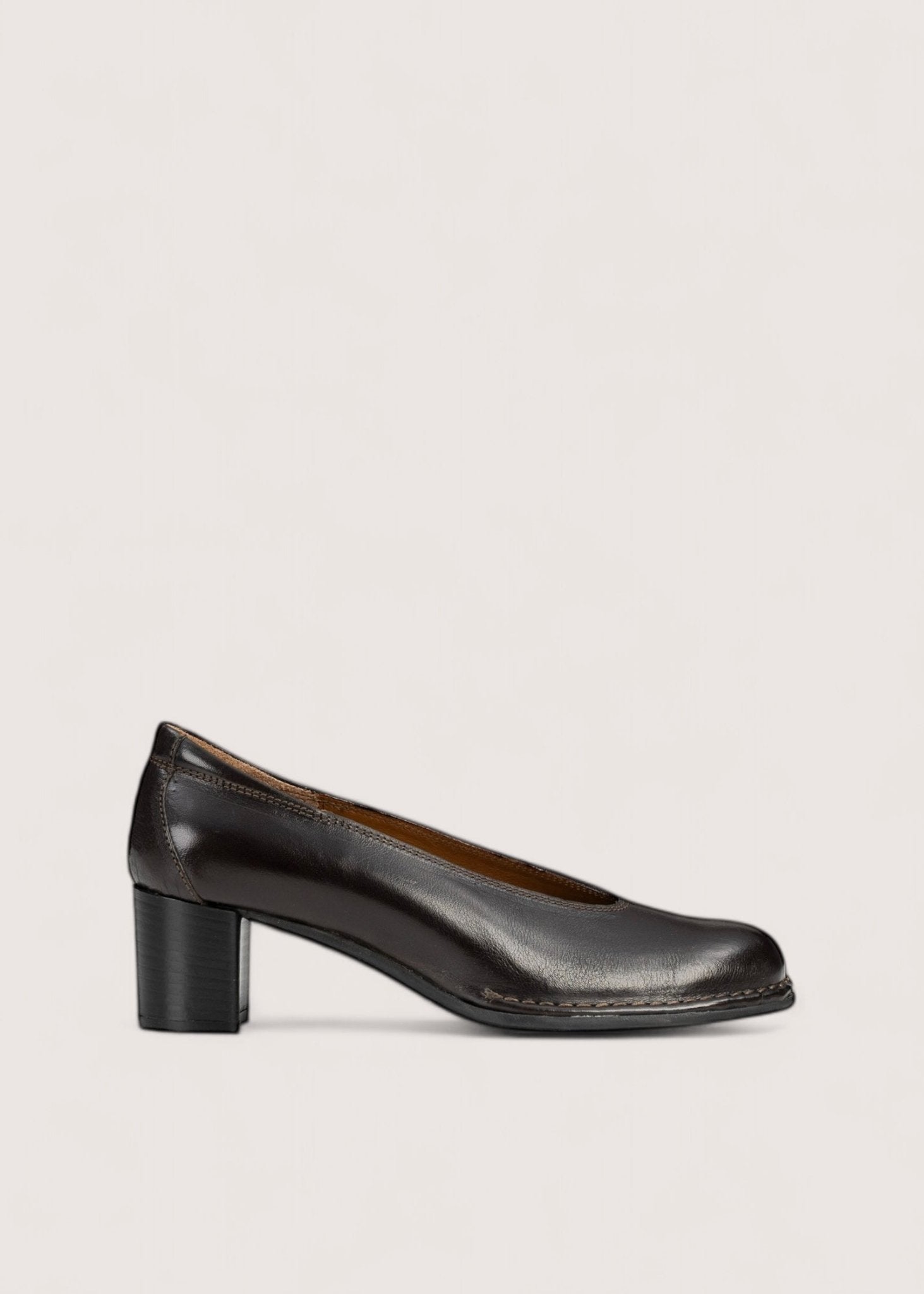 Elegant og enkel pump fra Bubetti lavet i det skønneste, mørkebrune kalveskind. Skoen har rund snude og en 5 cm hæl. Lavet på gummisål.