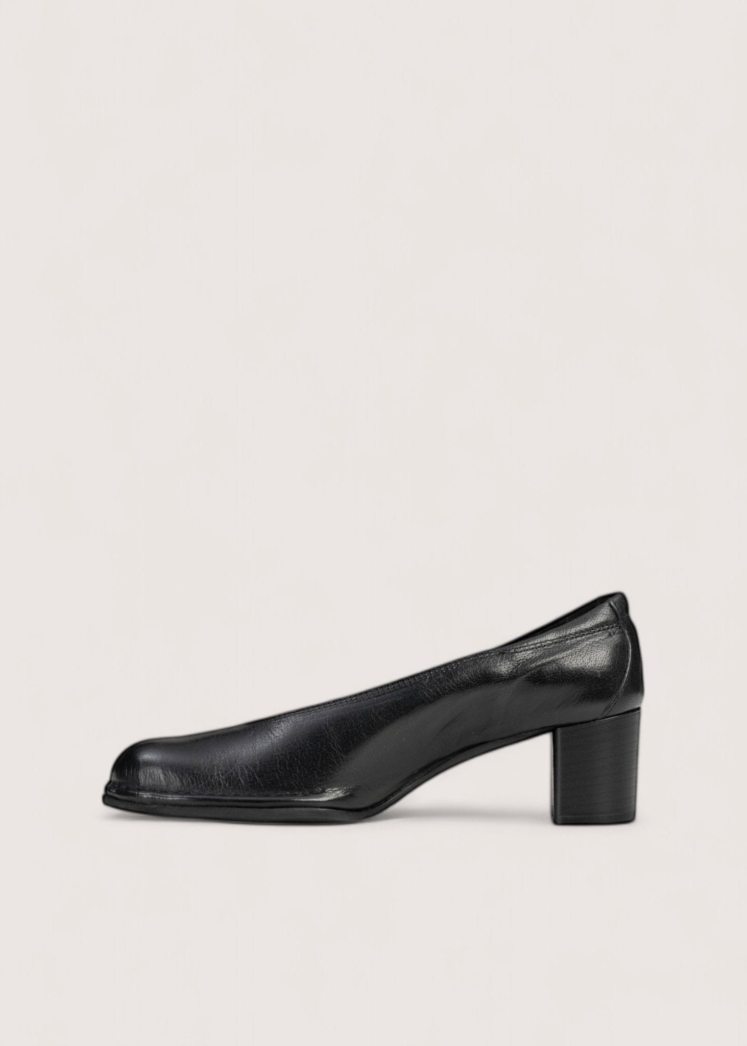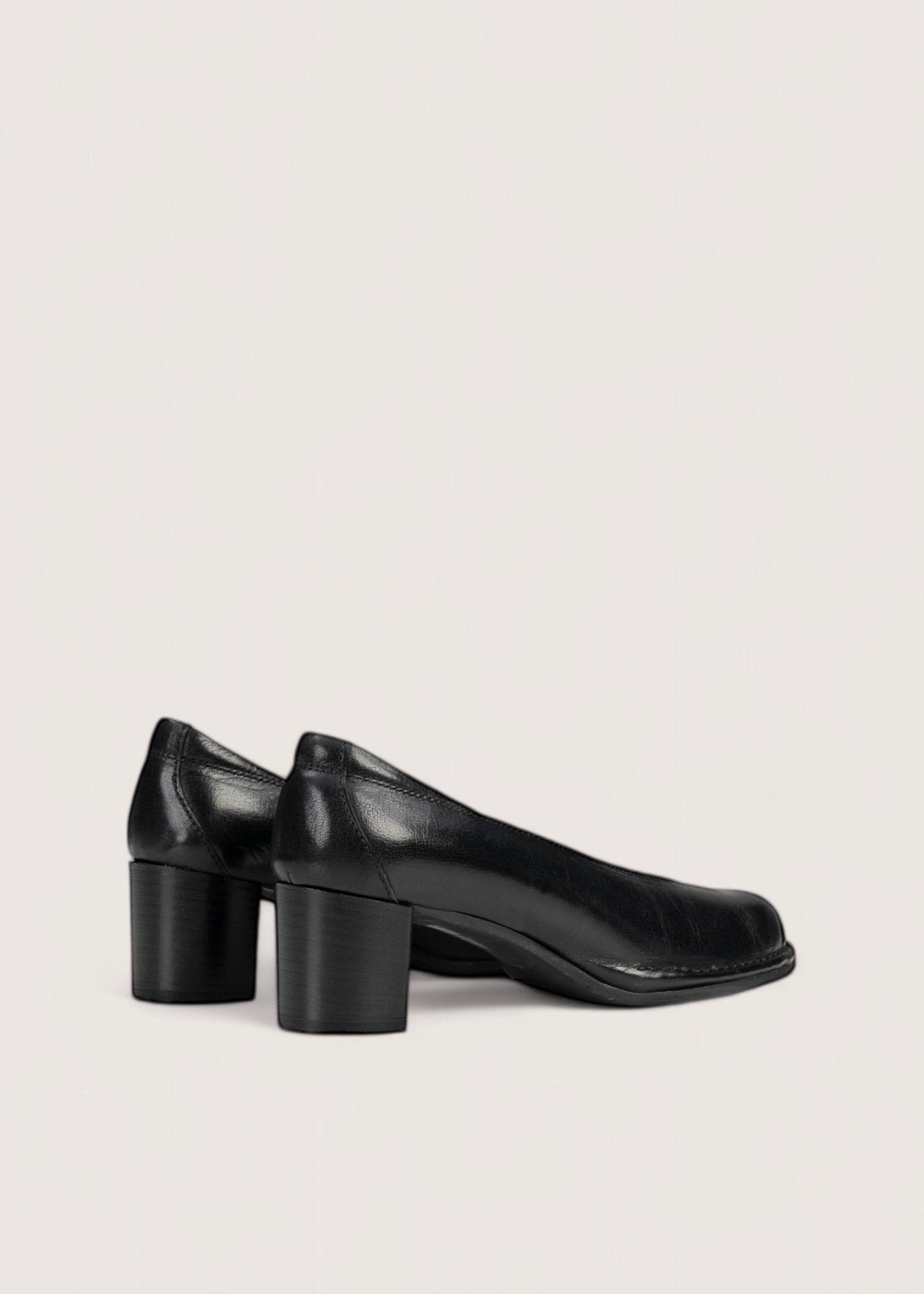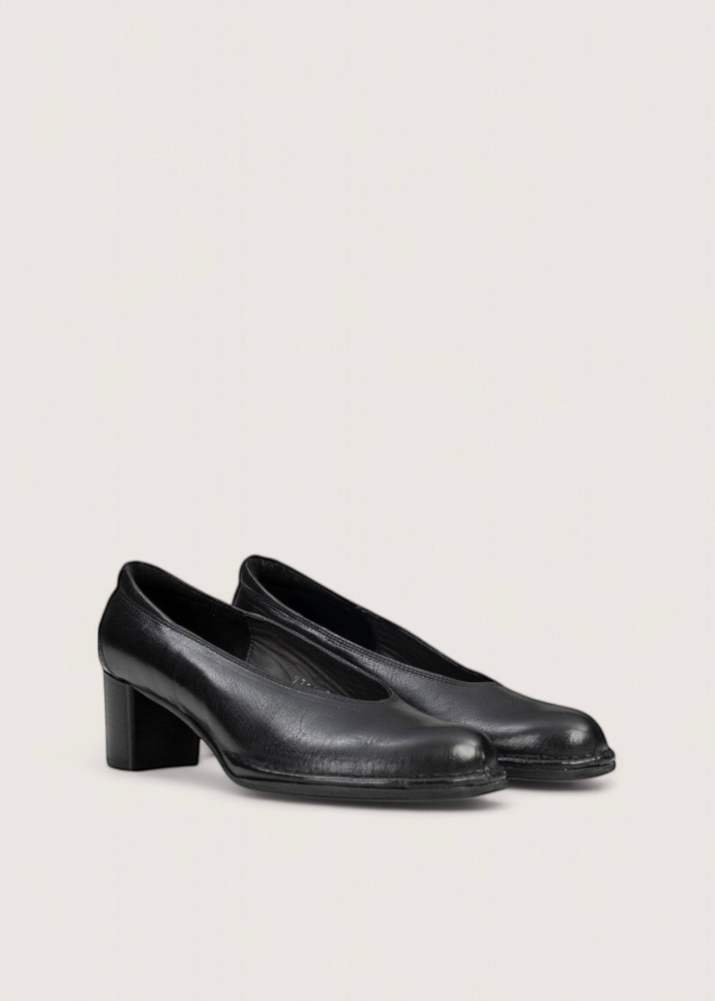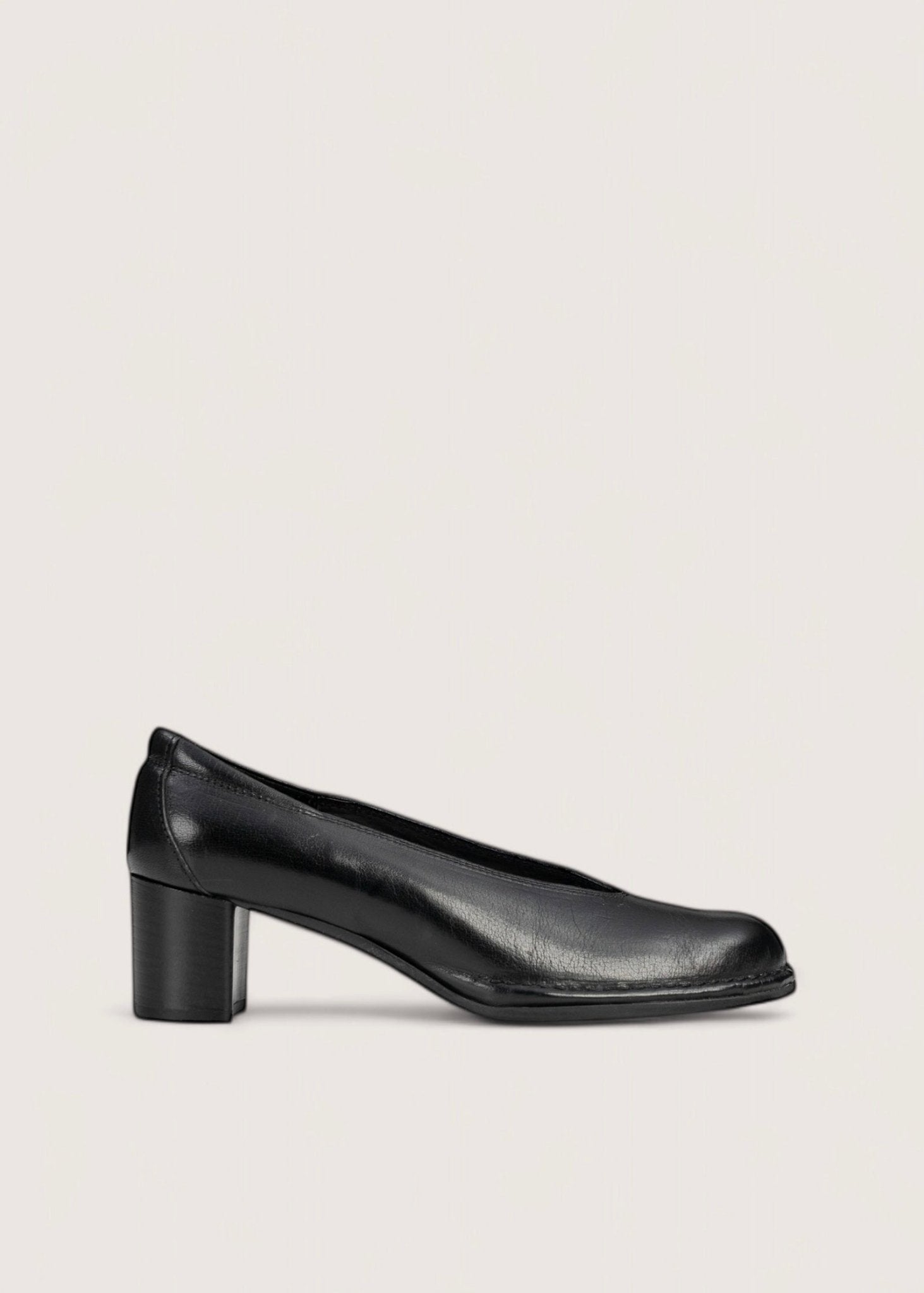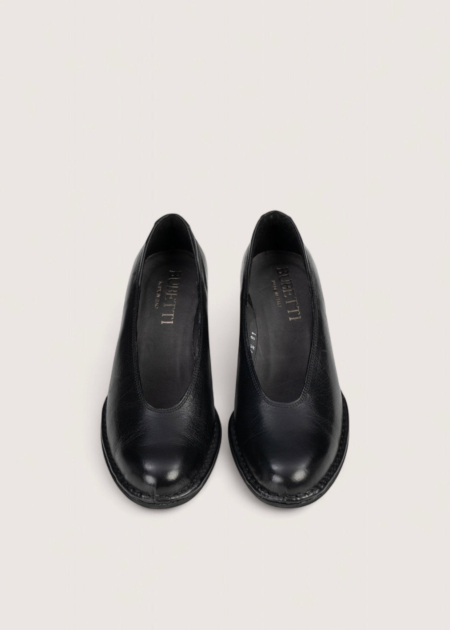 Elegant og enkel pump fra Bubetti lavet i det skønneste, sorte kalveskind. Skoen har rund snude og en 5 cm hæl. Lavet på gummisål.