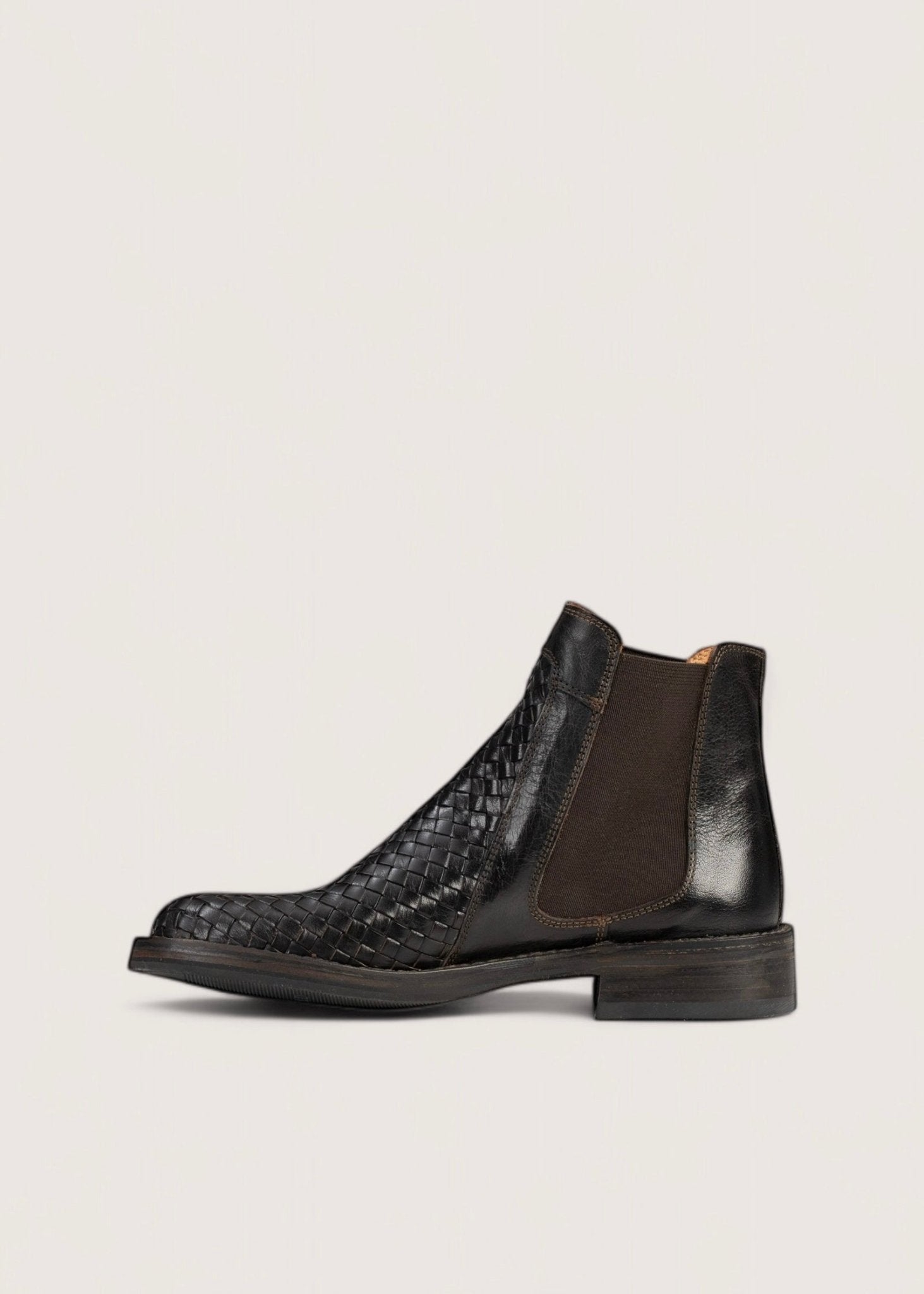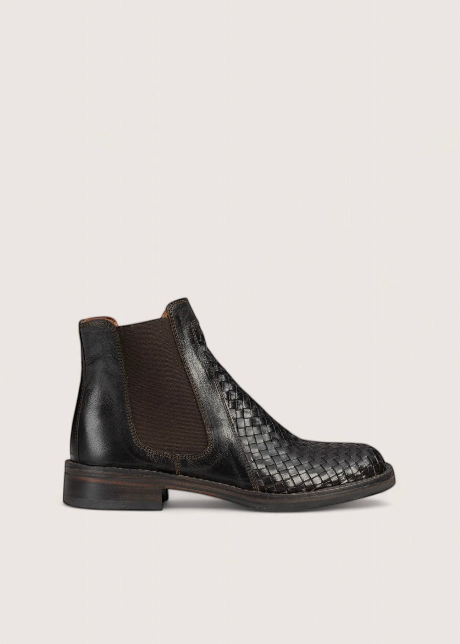 Flot klassisk Chelsea støvle med flet fra Bubetti i lækkert mørkbrun vegetabilsk garvet skind. Støvlen har elastik i begge sider og skindsåler betrukket med gummi.