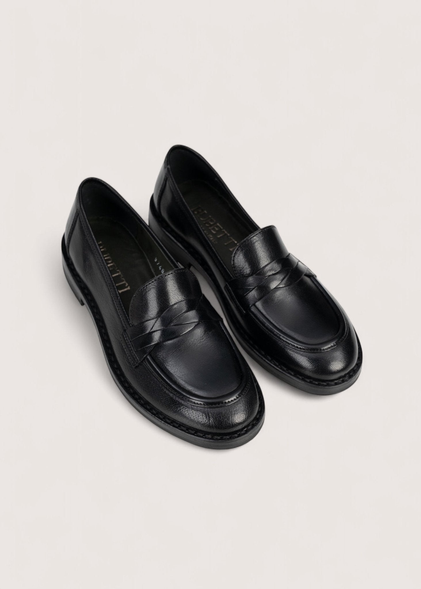 Bubetti 9748 sort klassisk loafer med dekorative skind detaljer